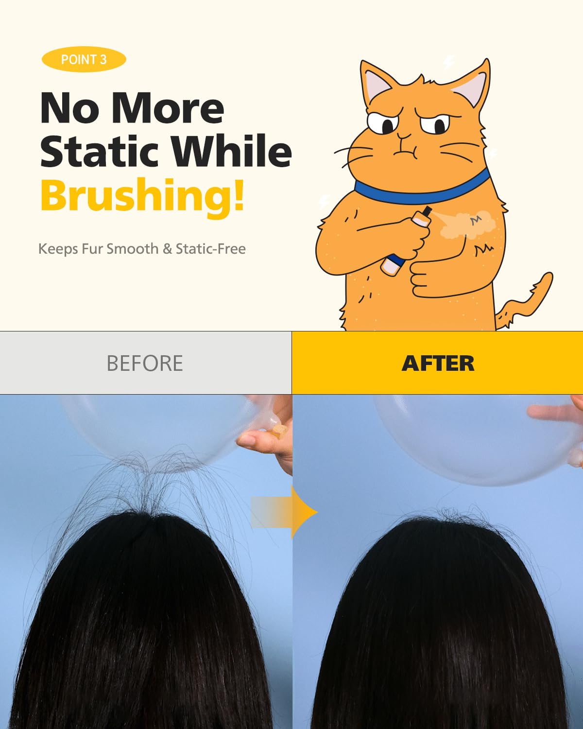 About this item Deep Hydration with 95% Natural Plant Extracts – Replaces water with a potent blend of 70% cat grass complex (oat, barley, wheatgrass) and 25% resurrection plant extract for superior skin and coat moisturization. Nourishes & Strengthens – Rich in vitamins and antioxidants to support a healthy, radiant coat while fortifying the skin’s natural barrier. Flake, Static & Dander Control – Smooths, detangles, and reduces static cling and dry flakes for a softer, more manageable coat. Unscented & Safe for Sensitive Cats – Free from added fragrances and made with 100% EWG Green-rated ingredients for gentle daily use. Perfect with Our Healing Brush – Spray on and brush through to evenly distribute moisture, detangle fur, and make grooming stress-free. › See more product details