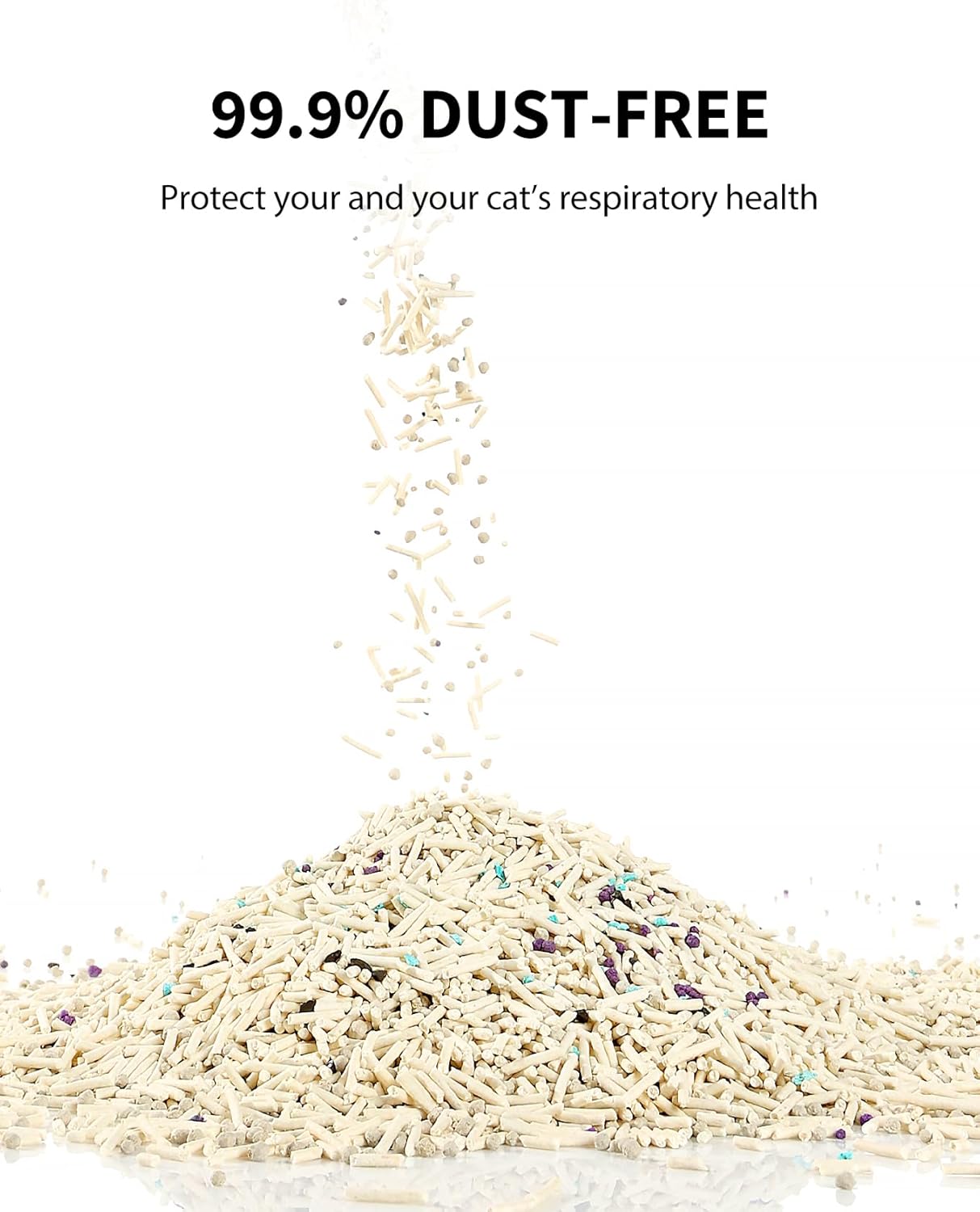 About this item UPGRADED MIXED CAT LITTER: PETKIT Clump+ tofu mixed cat litter combines tofu litter and bentonite litter for superior absorption and quick clumping. Enriched with zeolite, activated carbon, purple deodorants and diatomite, scientific ratio to lock in odors and keep the litter box fresher longer. This new litter is especially perfect for multi-cat families. EFFICIENT ODOR CONTROL: Activated carbon physically absorbs odor molecules, purple deodorant locks and decomposes odors. Zeolite has a unique crystalline structure filled with microscopic pores. These pores highly effectively trap odor molecules such as ammonia and hydrogen sulfide in cat waste, reducing the unpleasant smells in the litter box. INSTANT WATER ABSORPTION AND TIGHT CLUMPING: Bentonite litter instantly absorbs liquid from cat feces and urine, crating a cleaner environment for your cats. The cat litter forms solid clumps in just 3 seconds with strong liquid absorbency. Its non-stick feature helps minimize residue on the base, making it easy to scoop. LOW TRACKING AND DUST FREE: The larger granules of the cat litter reduce tracking by minimizing adherence to your cat's paws, keeping floors clean. Going through advanced 7 stages of dust removal process, this 99.9% dust-free cat litter prevents airborne particles during refills and waste covering, caring for the respiratory health of you and your cats. FOOD-GRADE INGREDIENTS AND WATER FLUSHABLE: Made with all-natural ingredients, our Clump+ cat litter is free of additives, ensuring a safe potty journey for your feline companions. And it’s water dissolvable and flushable, you can directly pour the used cat litter into the toilet (Note: Do not flush too many clumps at one time to prevent clogging the toilet). Unscented clumping cat litter is ideal for multi-cat households. › See more product details