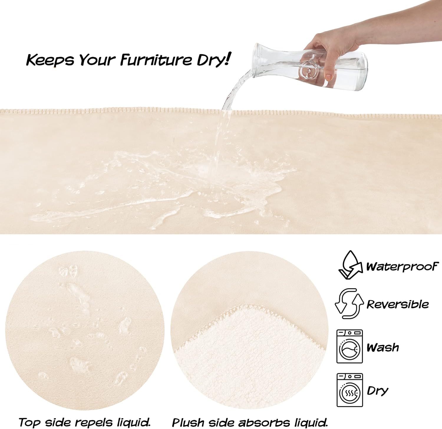 - Model Name: Waterproof Dog Blanket - 50x60-Inch Reversible Sherpa Dog Blanket for Couch, Bed, or Car - Protects from Spills, Stains, or Pet Fur by PETMAKER (Cream)