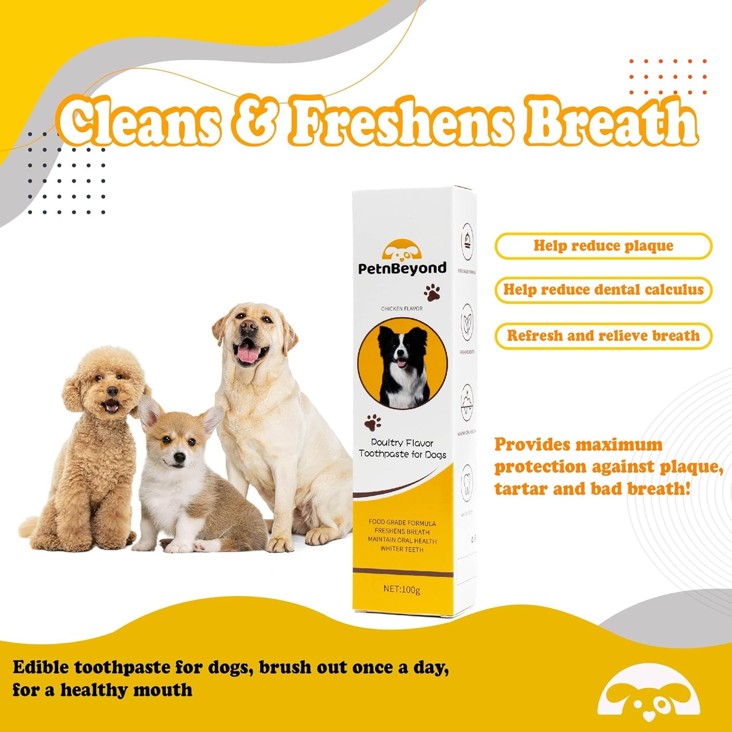 About this item Introducing PetnBeyond's Professional Dog Toothpaste: Elevate your pet's dental care routine with our premium dog toothpaste, meticulously crafted to deliver exceptional results in controlling plaque, tartar, and bad breath. Committed to the well-being of your furry companion, our toothpaste is a testament to our dedication to optimal oral hygiene for dogs. PetnBeyond proudly presents a toothpaste that not only addresses dental issues but also ensures your pet's comfort and happiness. Elevate Your Pet's Dental Care Experience: The journey towards superior pet dental care begins with a single step. Choose PetnBeyond's Professional Dog Toothpaste as your pet's dental companion, and embark on a path of holistic well-being. Witness the remarkable transformation as plaque, tartar, and bad breath become a thing of the past. With our toothpaste, you're not just investing in a product; you're investing in the happiness and vitality of your beloved furry friend. Embrace the Joys of Doggie Toothpaste: PetnBeyond is your partner in nurturing your pet's dental health, and our Toothpaste for Dogs stands as an essential companion in this journey. The delightful poultry flavor of our toothpaste turns the routine teeth-cleaning process into a delightful endeavor. It's an expression of care and commitment to your pet's well-being. Designed to meet the requirements of all dogs this toothpaste becomes an indispensable tool in your arsenal of pet care products. Versatile Dental Care for Cats: Our dedication to comprehensive pet care extends beyond dogs. PetnBeyond's Toothpaste isn't solely confined to canine companions; it's equally suitable for your feline friends. With the same level of commitment to quality, this toothpaste caters to the oral health of cats, providing an all-encompassing dental solution. Say goodbye to the hassle of juggling multiple products for different pets. With our versatile toothpaste, you'll have both dogs and cats covered Unleash the Power of PetnBeyond's Enzymatic Toothpaste: Your pet's oral health deserves the best, and PetnBeyond's Enzymatic Toothpaste for Dogs rises to the occasion. Our toothpaste is meticulously formulated to target the root causes of dental issues, ensuring thorough plaque and tartar control. Regular use of our enzymatic toothpaste guarantees not only the maintenance of your dog's oral health but also the preservation of their fresh breath. › See more product details