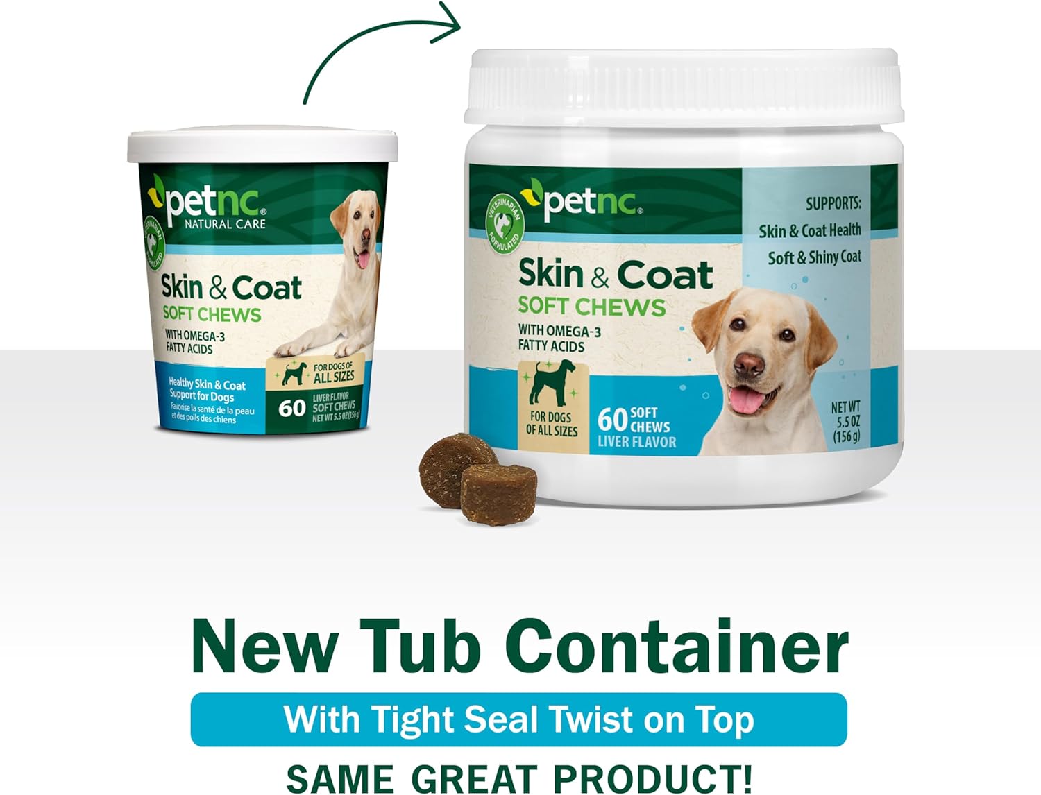 - Model Name: PetNC Natural Care Skin and Coat Soft Chews for Dogs, 60 Count