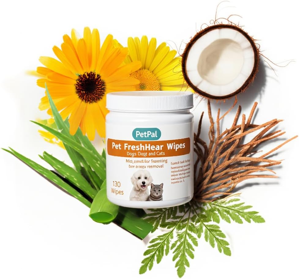 GENTLE FORMULA: Made with pure water, coconut oil, and chamomile extract for a natural and soothing cleaning experience for your pets DAILY CARE: Mild and non-irritating wipes suitable for regular use on all skin types, perfect for maintaining your pet's ear hygiene EFFECTIVE CLEANING: Specially designed to safely remove ear wax, dirt, and debris from your pet's ears without causing discomfort SOOTHING INGREDIENTS: Contains calendula and licorice extracts to help calm irritation and support healthy skin around pet's ears CONVENIENT PACKAGING: Includes 130 pre-moistened wipes in an easy-to-use container, making pet ear care quick and hassle-free › See more product details