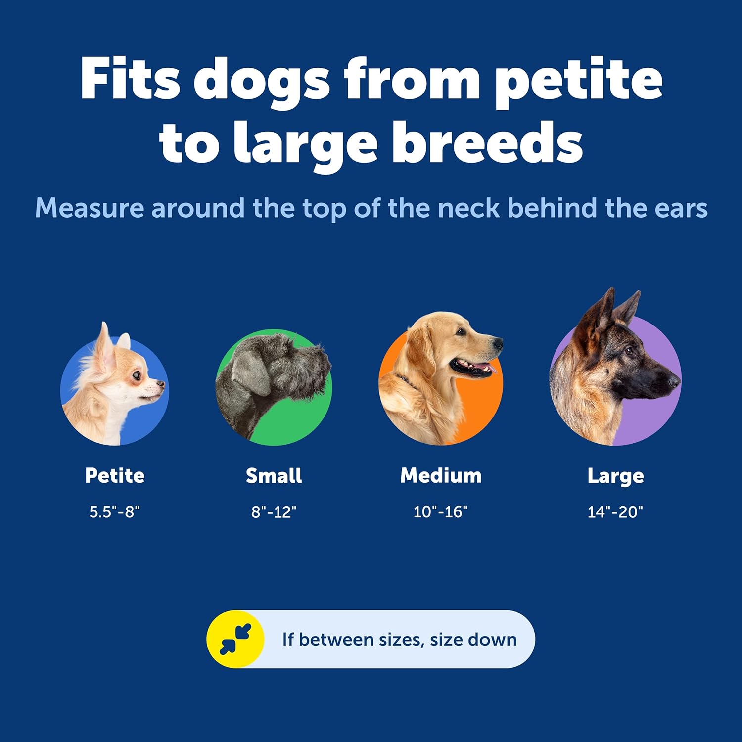 The Premier Collar "Your Dog's Neck's Best Friend". With a leash or with your hand, the Premier collar tightens to give greater control and reduces the risk of escape. Because it offers limited closure, it's safer than a traditional choke collar . Unlike other collars, the measurement taken for the Premier Collar is at the top if the neck directly behind the ears. This corresponds with the size of the collar in the closed position, so it is not necessary to add inches. For example if your adult dog measures 14" directly behind the ears, choose a medium collar. Sizing recommendations 5"-8" Petite, 8"-12" Small, 10"-16" Medium, 14"-20" Large, 18"-28" Extra Large. Once you've selected the proper size, simply place the larger opening over your dog's head. Adjust to fit by pushing the nylon through the slide. When tightened with a leash or by grasping the smaller nylon loop like a handle, the two metal rings should touch directly behind your dog's ears. Attach tags to these rings rather than the D-ring. The smaller nylon loop will lie flat after few days of wear.