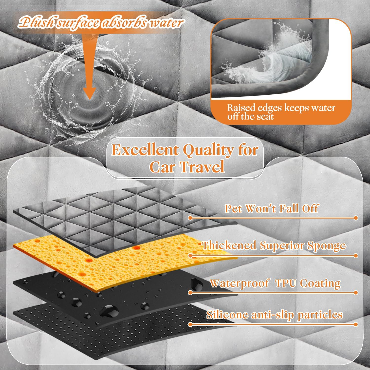 About this item SOFT AND COMFORTABLE FOR PETS--Dog bed for car back seat features a high-resilience thickened foam core and a soft surface design, protecting your dog's joints while providing an exceptionally comfortable resting experience. Whether on long trips or daily outings, your pet can enjoy cloud-like soft support that effectively relieves pressure. ANTI-SLIP DESIGN FOR SAFETY--Quilted surface of non slip dog mat provides excellent grip for dog's paws, effectively preventing slipping or tipping over while driving. The bottom features anti-slip rubber grips to ensure the mat stays firmly secured to the car seat without shifting. Soft backseat dog bed offers your pet a safer, more stable experience during car Travel. WATERPROOF PROTECTION FOR CAR SEATS--Petskd dog bed surface features water-absorbing properties, while its inner layer is coated with a waterproof barrier that swiftly blocks liquid penetration. It effectively protects car seats or extenders the lifetime of seat covers, preventing stains and moisture damage. Whether it's pet accidents or spills during meals, it handles it all with ease. EASY TO CLEAN AND STORE--Our dog travel bed fits perfectly when placed on the back seat extender. When your pet makes a mess, there's no need to remove the extender—simply take off the dog bed to wipe it down, vacuum it, or toss it in the washing machine. One end features elastic cords for easy rolling and secure storage, a woven handle for convenient carrying. Compact when stored, it fits neatly in a room corner or car trunk, saving you time and effort. PERFECT FOR MULTIPLE USES--The dog car cover isn't just a backseat pet mat bed and a compact SUV cargo. It can also use as a couch cover, window cushion, bedside mat, or outdoor camping blanket, Wherever you and your pup go, comfort follows! Petskd offers a 12 months after-sale service, if you have any problems, please reach us and we will get back to you within 24 hours. › See more product details