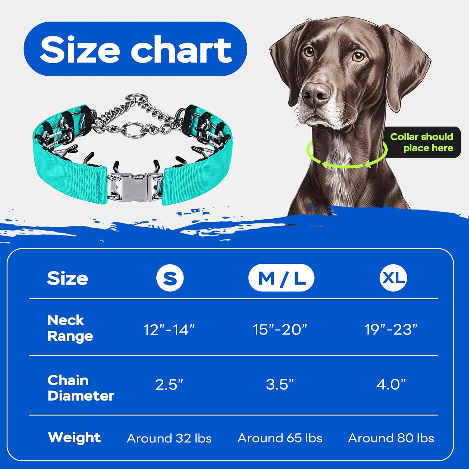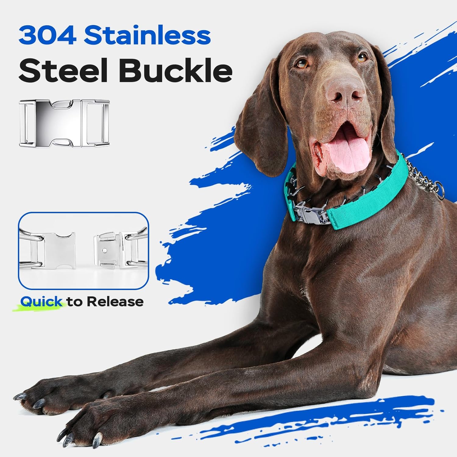 About this item Effective Behavior Correction – Our prong collar for dogs is designed to correct unwanted behaviors gently and effectively. It works by applying mild pressure around your dog’s neck, similar to how a mother dog would correct her puppies. This humane approach ensures your pet learns good behavior without fear, pain, or harm to their sensitive neck area. Durable and Rust-Resistant Design – Crafted from high-quality stainless steel, our pinch collar for dogs is built to last. Unlike other collars that use galvanized iron which can rust over time, our collar resists corrosion, ensuring it stays strong and looks great for years. The metal quick-release buckle allows for easy locking and unlocking, making it convenient for daily use. Custom Fit, Any Size, Any Time – The dog choker collar comes with 1 extra link for added flexibility. Easily adjust the length using pliers to add or remove links, ensuring the perfect fit for your dog’s neck. This is especially convenient for growing puppies or dogs with changing coat thickness throughout the seasons. Gentle Training with Mother Dog’s Method – The choke chain for dogs features smooth, round edges and rubber caps for added safety. It mimics the natural correction method used by mother dogs, providing a gentle yet effective way to communicate acceptable behavior. This humane design ensures your dog learns quickly without developing negative associations with walking or training. Easy Cleaning and Maintenance – Keeping your dog’s collar clean is a breeze with ours. Simply wipe it down with a damp cloth and mild soap, then let it air dry. The sturdy stainless steel construction and durable materials make it resistant to dirt and odors, ensuring it stays fresh and hygienic for longer periods. › See more product details