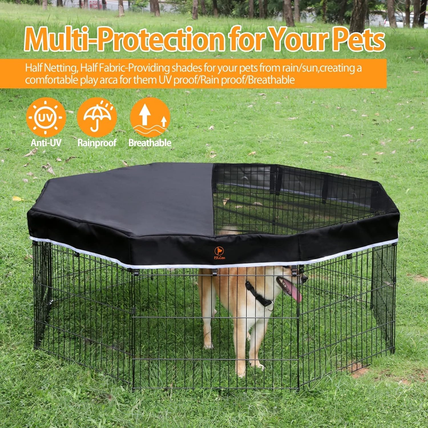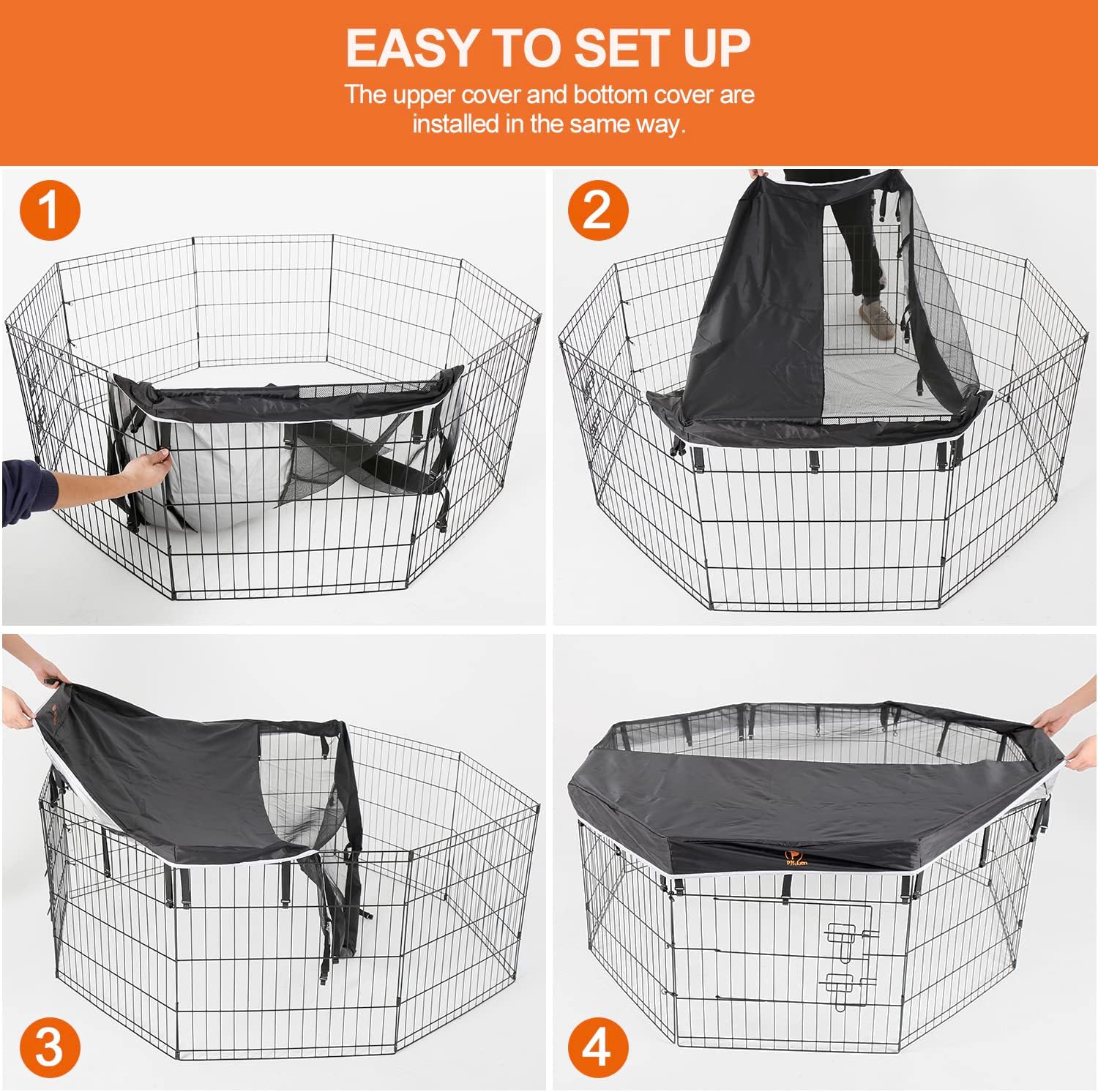 About this item Note: Only fit octagonal shapes! ONLY TOP COVER, NO PLAYPEN TOP pad for 24 Wide 8 panels Playpen: Our enclosure cover fits all 8-panel, 24-inch-wide dog playpens available in the market, without worrying about mismatching. Note: Only Pet Playpen TOP Pad, Playpen Not Included Full Coverage: This puppy playpen TOP PAD providing your dogs with more comfortable space to play inside the pen in your family garden Durability and Washable: The puppy playpen TOP PAD uses 420D thick oxford fabric that is very durable and remains intact even after being dragged.Also it's washable Waterproofness: Additionally, this puppy playpen TOP PAD is waterproof, preventing liquid damage and making sure that no stains remain on the surface Easy Installation: The playpen top pad has elastic straps that make it hook to joint of playpen. Just 5 minutes will finished › See more product details