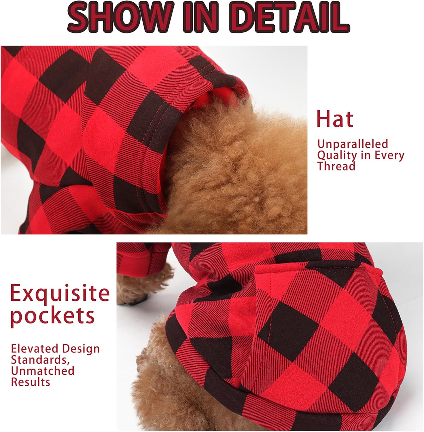 About this item Premium Polycotton Fabric: Combines the softness of cotton with the durability of polyester for long-lasting comfort. Trendy Plaid Design: Classic plaid pattern adds a stylish flair to your pet¡¯s attire. Functional Back Pocket: Cute pocket on the back adds both style and utility. Leash Hole for Convenience: Built-in leash hole makes it easy to attach a leash without removing the hoodie. Suitable for All Sizes: Available in sizes for small, medium, and large dogs, ensuring a perfect fit for every breed. Breathable and Comfortable: Keeps your pet comfortable with breathable fabric that prevents overheating. Easy to Wear and Remove: Stretchy material allows for easy on and off, perfect for squirmy pets. Great for All Occasions: Perfect for casual outings, festive events, or just lounging around at home. Durable Construction: Strong stitching ensures durability, even with regular wear and washing. Provides Warmth: Offers a cozy layer for cooler days, making it perfect for autumn and winter. Show more › See more product details