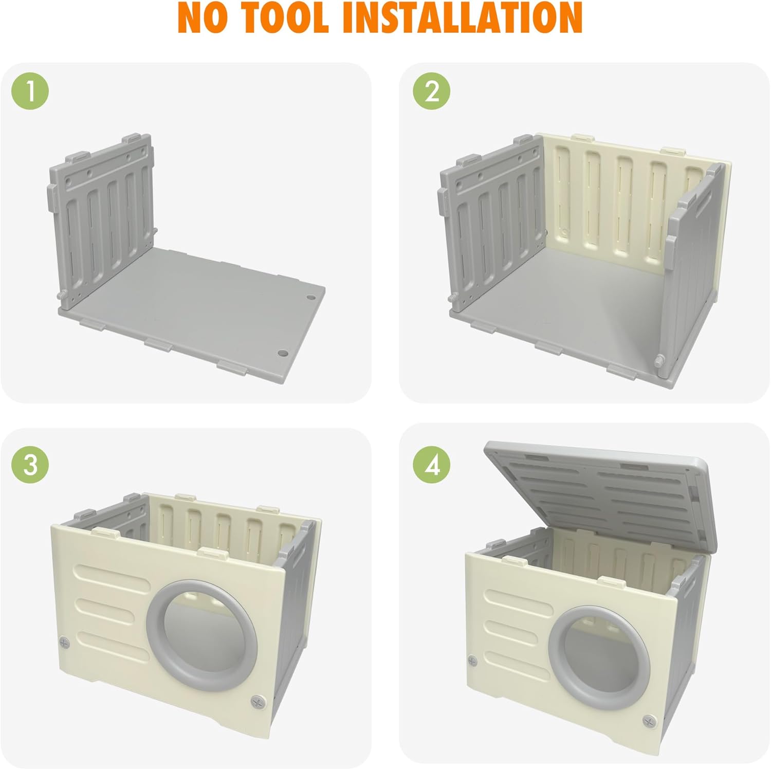 About this item 【Indoor & Outdoor Use】Crafted with three sealed sides (excluding the entrance) and an elevated bottom supported by a sturdy stand, this plastic cat house is windproof, waterproof, and sunproof. It works perfectly both indoors and outdoors, giving outdoor cats a comfortable and sheltered place to call home 【Spacious Interior】With internal dimensions of 20.8''x16.1''x15.1'', it can comfortably fit two adult cats at the same time. Its appealing color and exterior design not only make it a cozy home for your feline friends but also a stylish decoration that adds charm to your space 【Nature-inspired Design】Featuring a unique circular hole design that imitates the natural burrowing experience, it provides pets like cats, rabbits, and other small animals with a more instinctive and secure resting space. The round entrance allows easy access and creates a cozy, secluded haven, boosting your pet's sense of comfortable and helping them feel more relaxed and at ease 【Stackable & Sturdy】Boasting a double-layered, thickened structure, this cat house offers excellent durability and a strong load-bearing capacity, ensuring long-term use. The stackable design lets two or more units be securely stacked without wobbling, saving space while enhancing stability 【Easy Installation & Cleaning】WOWOTOZN plastic cat house is simple to assemble quickly with clear, step-by-step instructions. The straightforward design also makes cleaning and maintenance a breeze—just wipe the exterior with a damp cloth to keep it neat and tidy › See more product details