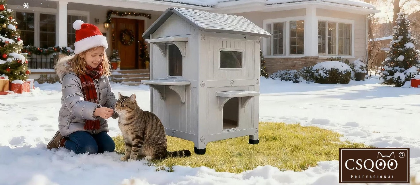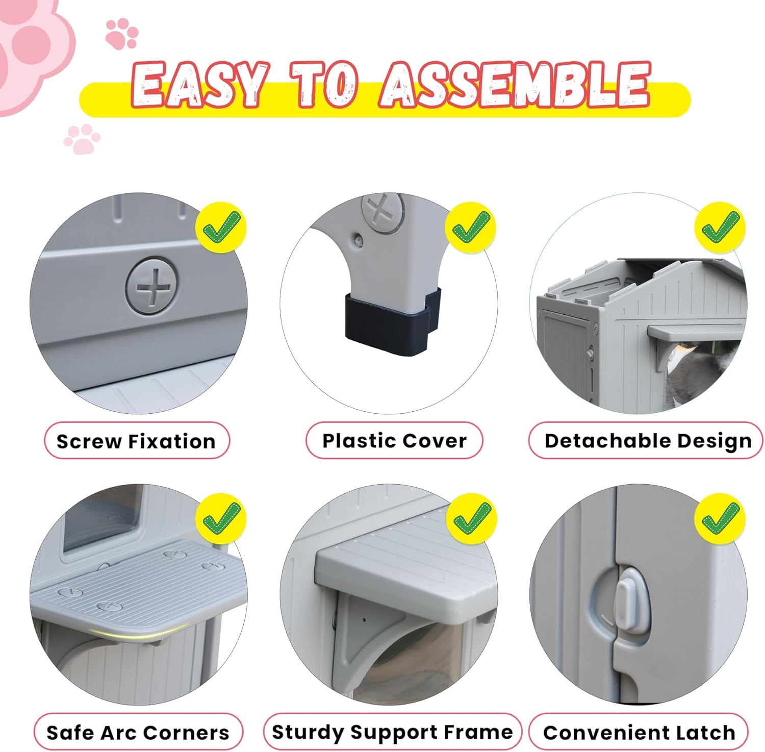 About this item All-Season Use: This outdoor cat house is designed to withstand all weather conditions, providing your beloved cat with year-round shelter. Whether facing rain and snow, howling winds, or scorching summer heat, the plastic roof ensures waterproofing while offering extra insulation and warmth, ensuring your cat enjoys a comfortable living environment throughout the seasons. Escape Door Design: The triple-door structure allows cats to enter and exit freely, preventing entrapment and enabling quick escape during emergencies. Easy to Clean: The open-frame construction simplifies daily maintenance. Both the roof and door panels open for effortless cleaning inside and out. The removable fabric cover is machine washable, ensuring the house stays fresh and clean. Weather Resistance: The plastic roof withstands heavy rain and snow, keeping your beloved pet warm and dry at all times. Great for multi-cat households: Internal space measures 33.8''x21.5''x21'', Two Story Outdoor Cat House with Balcony offers a large feral villa cat shelter, perfect for multiple cats › See more product details