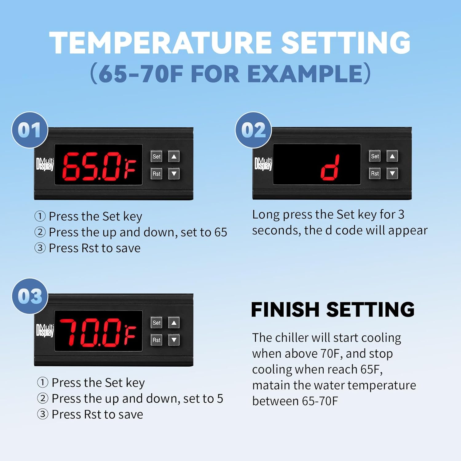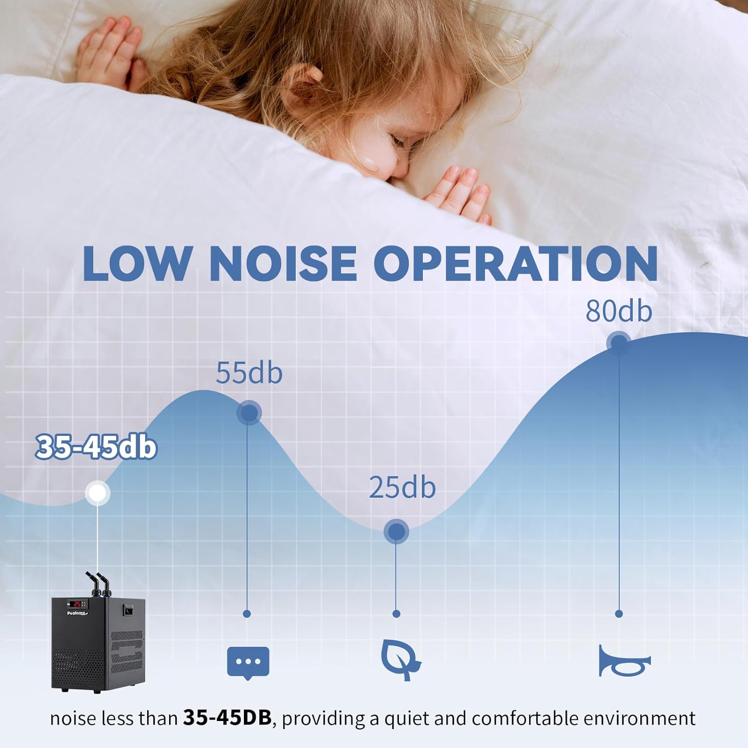 About this item 【Stabilized Water Temperature】The 26 gallon aquarium chiller is the perfect addition to a home aquarium, maintaining the water temperature at an ideal 65-80F/18-27C, even on hot summer days, ensuring a stable environment for fish and corals 【Fast Cooling】Our water chiller have a built-in energy efficient compressor and use non-polluting r134a refrigerant, for better fast and efficient cooling. To ensure proper cooling of the cooler, we also provide a 210 gph water pump that provides efficient and stable water circulation 【Effective Heat Dissipation】The chiller is equipped with cooling holes on the front and sides, and 2 high efficiency cooling fans are built in the back to ensure excellent heat dissipation. We recommend leaving at least 6 inches of space around the chiller to ensure better air circulation and cooling, so that the fish tank chiller can work efficiently all day long! 【Fresh & Salt Water】The use of corrosion-resistant titanium evaporators ensures that the chiller can be used in both fresh and salt water for a wide range of applications, making it great for providing ideal water temperatures for aquatic life such as axolotl, fish, jellyfish, crystal shrimp and coral 【Helpful Service & Warranty】 Our store provides 1-year warranty for this 26gal water chiller, Poafamx customer service team is always willing to stand behind our customers, giving you a satisfactory solution if any problems encountered › See more product details