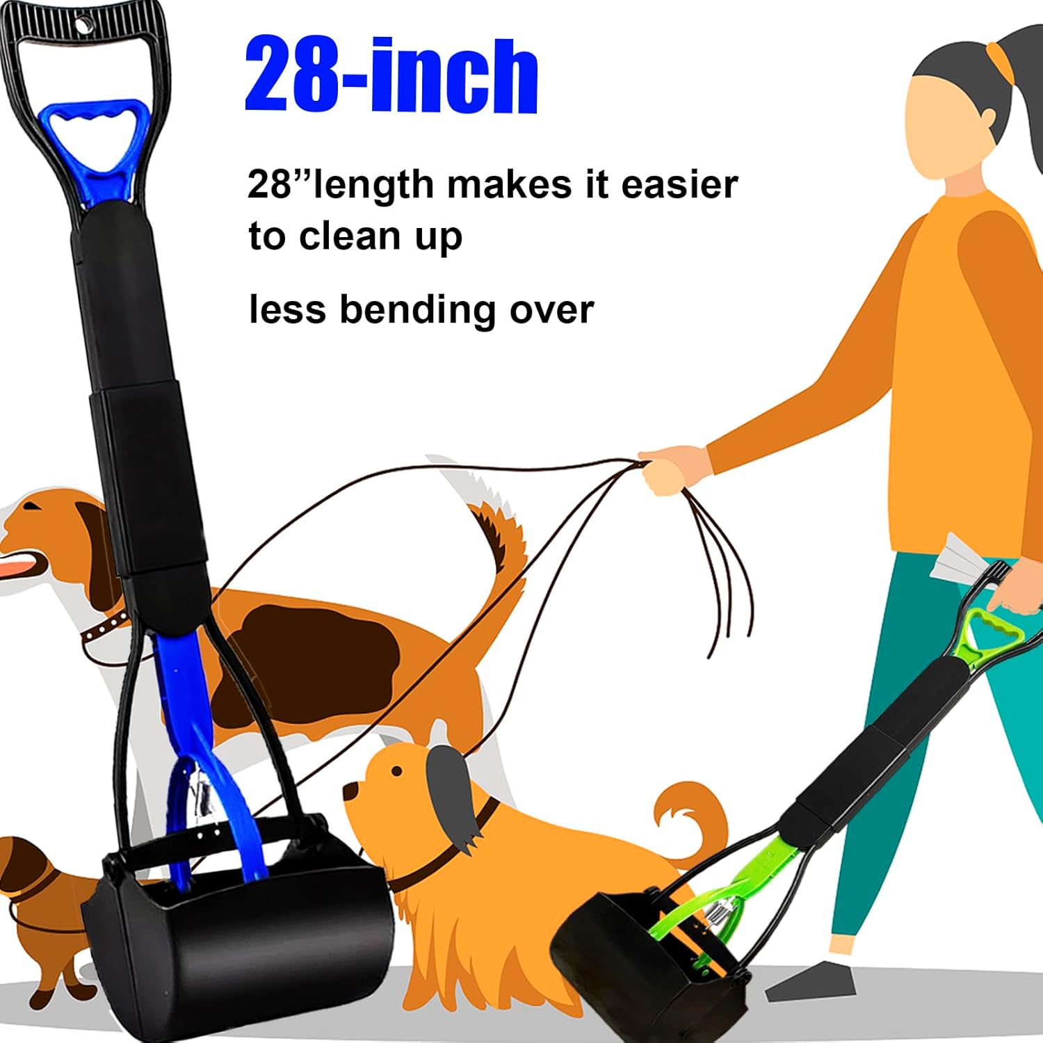 - Size: 28" & 24“ pooper scoopers