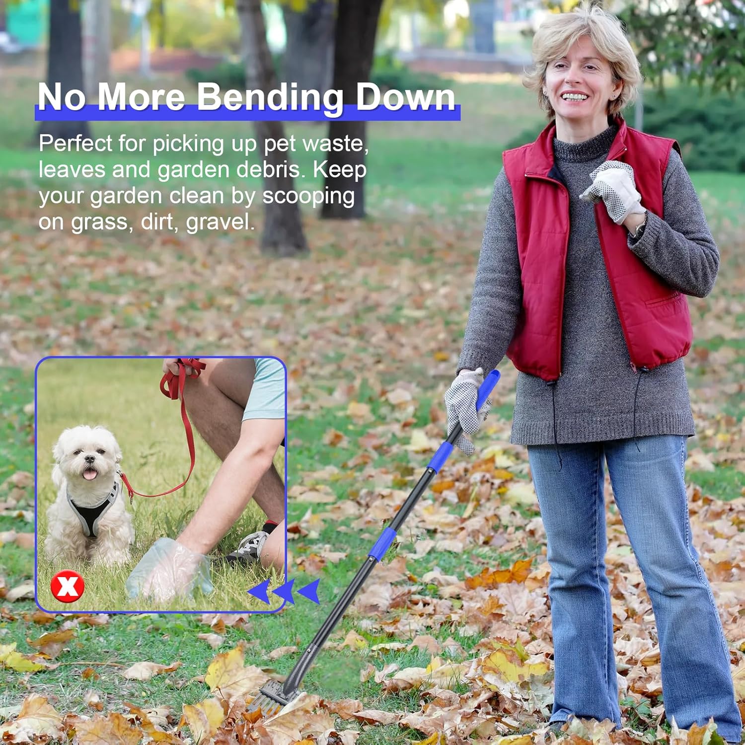When cleaning up pet feces, there is no need to bend over, reducing direct contact with the pet feces and making the cleaning process more hygienic.