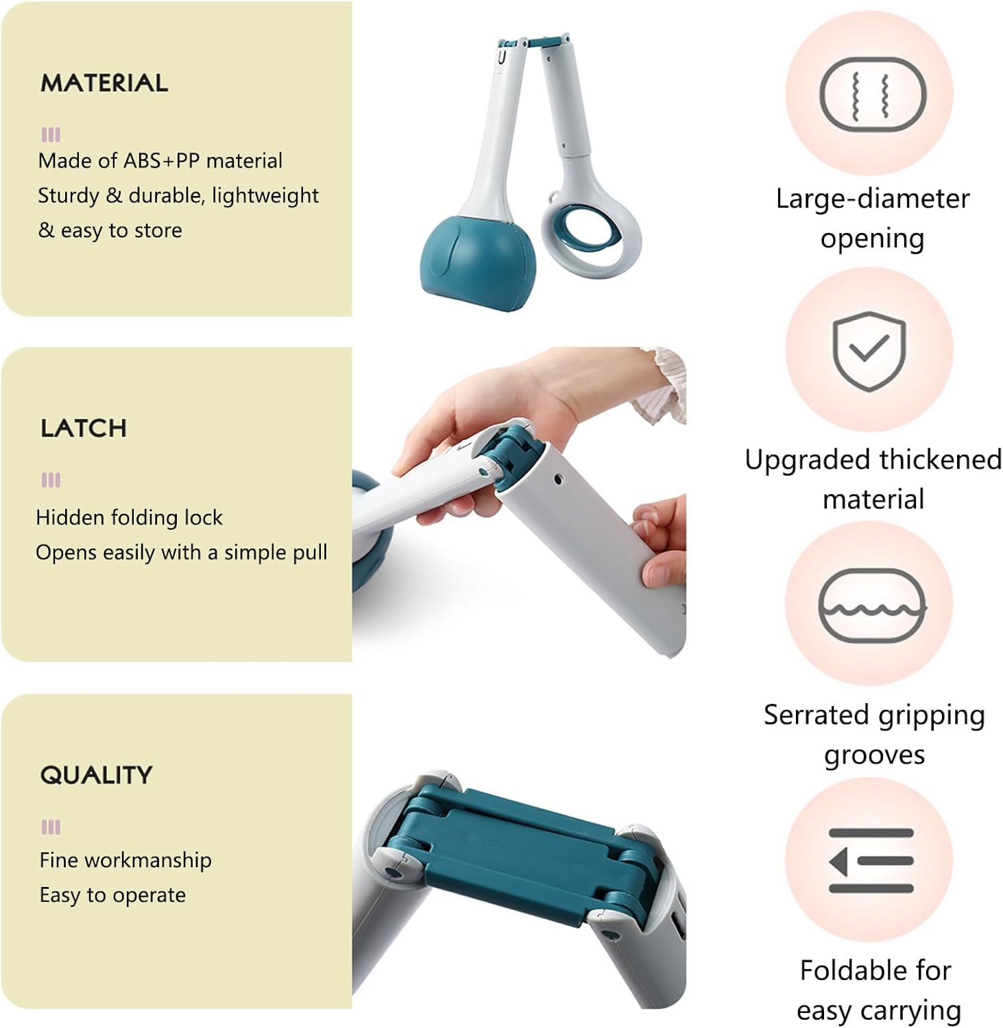 Effortless Cleanup with Our Ergonomic Pet Waste Scooper! Tired of the unpleasant task of cleaning up after your pet? Our innovative waste scooper is designed to make the job quick, hygienic, and effortless. Experience the ultimate in convenience and durability. The standout feature is the Ergonomic, No-Bend Design. With its 28 inch handle, you can maintain a comfortable upright posture during cleanup. This prevents back strain and keeps you at a safe distance from mess and unpleasant odors, making the process far more dignified. Portability is a breeze with the Foldable & Highly Portable design. A simple lock/unlock mechanism allows the tool to fold in half in an instant. It stores compactly in your car trunk, backpack, or closet, making it the perfect companion for trips, walks, or visits to the park. It arrives ready for immediate use, complete with a dispenser containing 20 waste bags. Operation could not be simpler. The One-Handed Operation is enabled by an easy-pull handle and high-tension springs, ensuring a secure grip and effortless scooping motion with just one hand. The serrated teeth at the head are engineered to securely grab waste from all surfaces—grass, gravel, or concrete—while allowing small debris like leaves to fall through. Crafted from Premium & Durable Materials, this scooper is made from sturdy, lightweight, and non-stick ABS. It's rust-resistant, easy to rinse clean with a hose, and built for reliable, long-lasting daily use. While perfect for pet waste, this is also a Versatile Multi-Purpose Tool for your yard. Use it to pick up fallen fruit, pinecones, or any other items you'd prefer not to touch directly. Make cleanup a thing of ease. Add the ultimate pet waste solution to your cart today