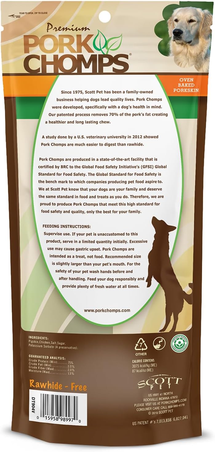 - Directions: Supervise use. If your pet is unaccustomed to this product, serve in a limited quantity initially. Excessive use may cause gastric upset. Pork Chomps are intended as a treat, not food. Recommended size is slightly larger than your pet's mouth. For the safety of your pet wash hands before and after handling. Feed your dog responsibly and provide plenty of fresh water at all times.