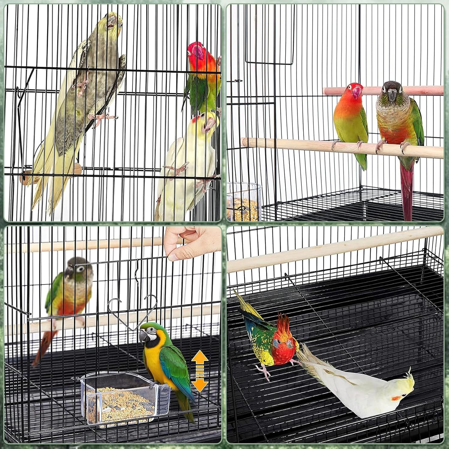 Product name: Bird cage Material: Iron + Plastic Color: Green Product shape: Irregular Product size: 42*32*37cm