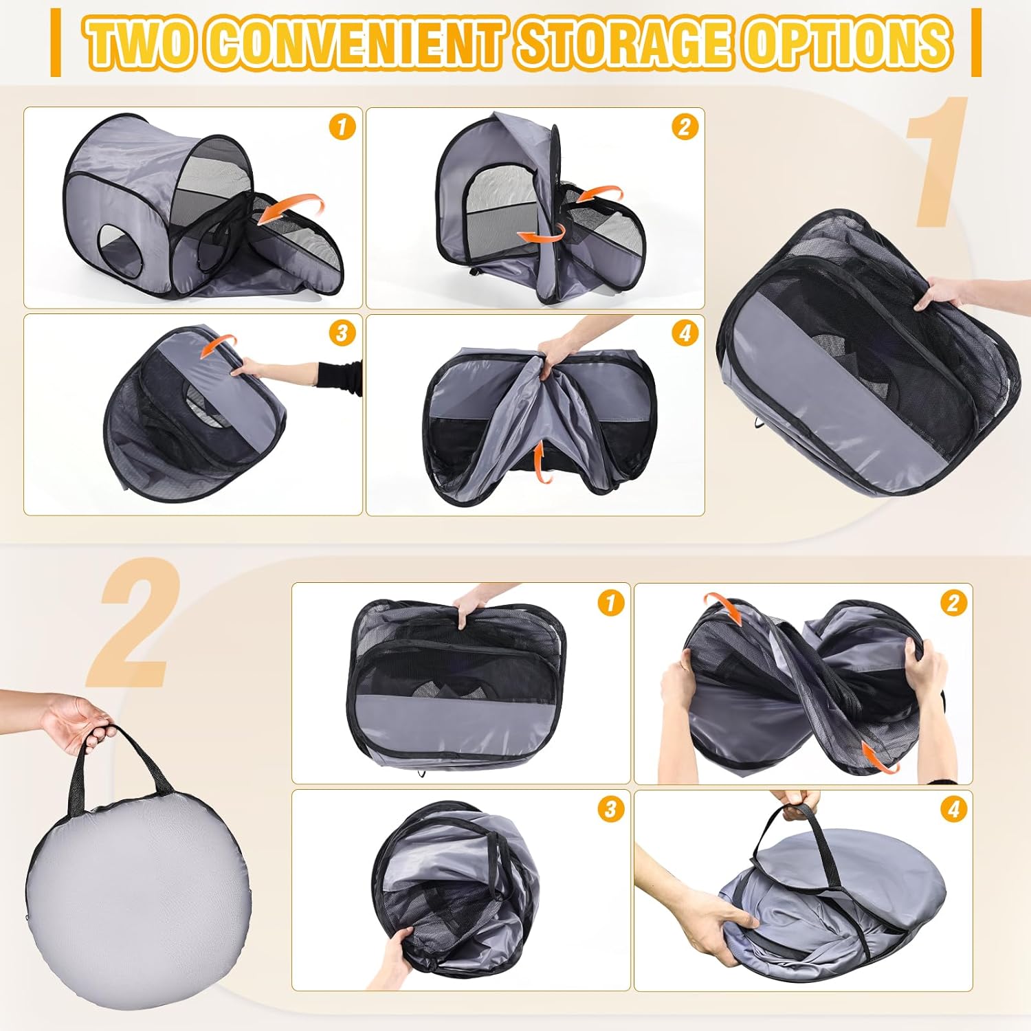 About this item Spacious & Fun Design: This cat tent features a unique ring tunnel, adding excitement and extra activity space for your pet. With 2-linked-enclosed areas, one can be used for play while the other serves as a cozy resting spot or a space for a litter box, ensuring comfort and convenience Breathable & Durable Construction: Made from high-quality Oxford fabric and mesh, this outdoor cat tent ensures excellent ventilation and visibility for both pets and owners. The sturdy materials provide long-lasting durability, making it suitable for indoor and outdoor use Versatile & Multi-Purpose: Measuring 45"*25"*24", this kitten playpen is perfect for rabbits, lizards, hamsters, and other small animals. Its versatile design makes it an ideal solution for pet owners with multiple animals or those looking for a flexible enclosure Portable & Easy to Store: Designed with convenience in mind, this dog playpen is foldable and lightweight, making it easy to carry and store. Whether you're traveling, camping, or simply rearranging your home, this portable playpen ensures your pet’s comfort anywhere Convenient & Portable: Featuring two storage options, this cat playpen is easy to fold and carry, offering flexibility in storage and transportation to suit your needs › See more product details