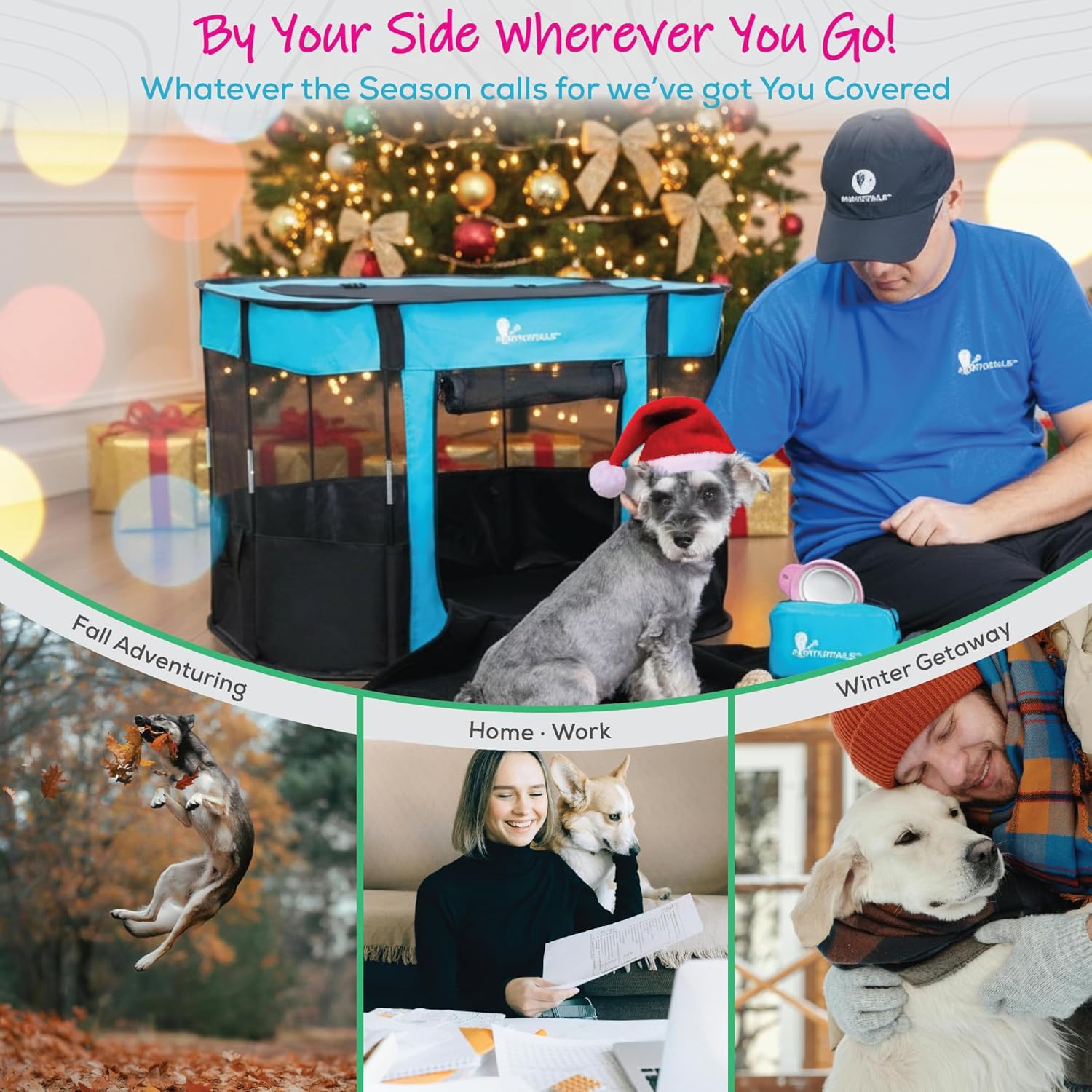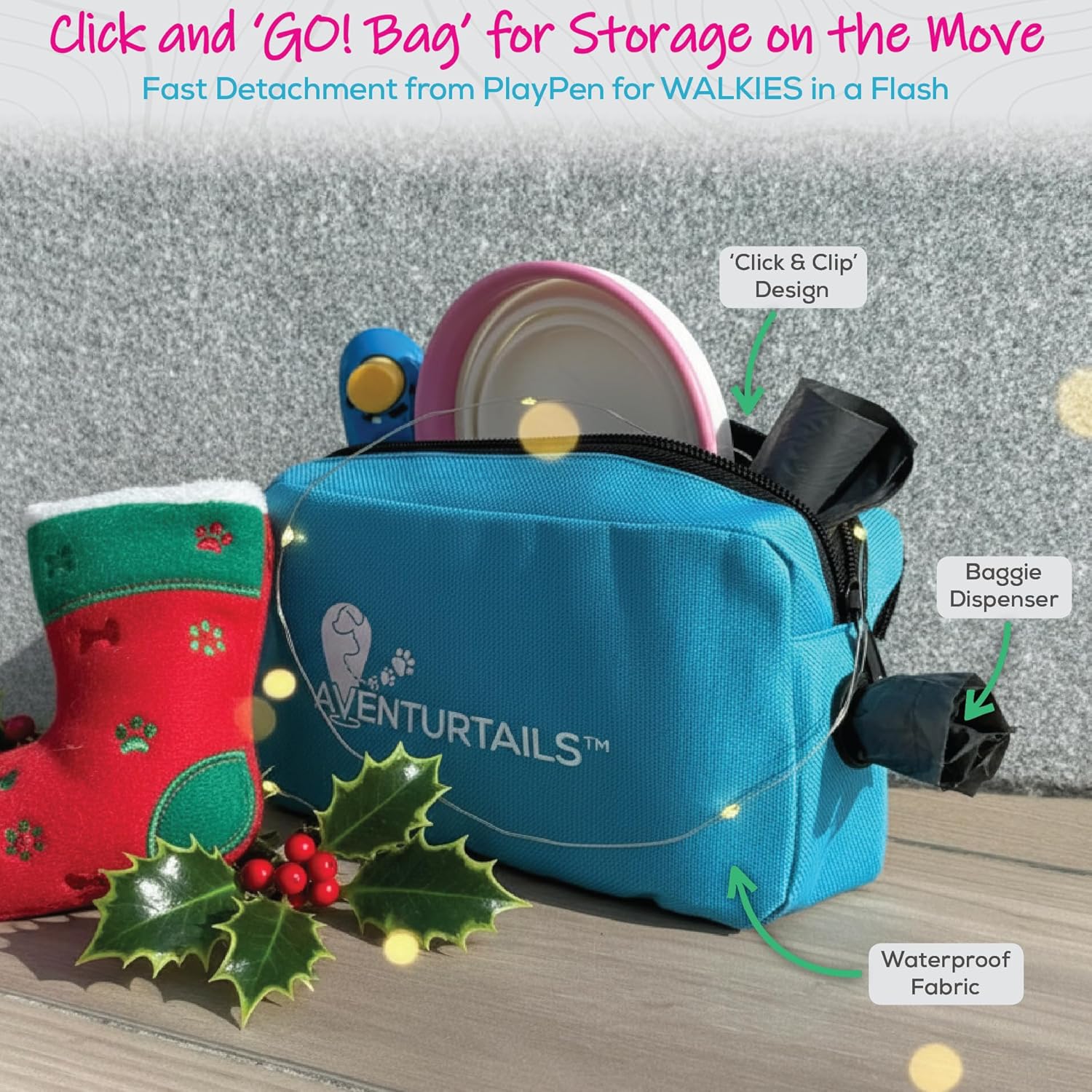 About this item Your Complete Portable Pet PlayPen Solution: Becoming your pets' preferred Home away from Home. The AventureTAILS PlayPen Package has got you covered including practical useful accessories perfect for you and your pets’ fun adventures. Always Stay by your side wherever you go with AventurTAILS. Designed for your Pets: The space-saving rectangular Playpen for Cats / Dogs offers comfort, security, for play and rest, at every life stage. As a birthing crate, whelping box, puppy or kitten pen to toilet training kennel or post-OP recovery enclosure to temporary timeout cage or their ultimate chillout zone at home or away. Stress-Free Set-up: Inside at home, outside in the backyard, camping, on the road or out adventuring; assembly, disassembly and folding your pop-up dog playpen is simple. An always-with-you, sewn-in QR code lets you instantly access clear step-by-step instruction video guides - scan with your phone anytime, anywhere on-the-go. Luxury and Comfort: The ultra-soft fleece comfort liner adds cozy luxury to the pop up pet playpen, helping your pets relax, rest and recharge. Strong corner hook-and-loop fasteners prevent the blanket bunching-up during play. The durable fleece mat is machine washable for easy cleanup should any little accidents occur. Click and GO! Anywhere: The portable doggy kennel includes a matching Detachable GO! Bag with a baggie dispenser so you are always ready for walkies in a flash! The buckle-clip easily attaches to backpacks, leashes or harnesses. Ample space for treats, toys or your small personal items. Portable and Convenient: After outdoor / indoor adventuring is done, easily store and carry your foldable pet playpen in the included compact, water-resistant Travel Drawstring Carry Bag with shoulder strap. Lightweight and travel-ready - perfect for planned explorations and spontaneous outings. Durable Construction: Made of bite-scratch resistant, odor-free, waterproof Oxford fabric and 360degree soft airy mesh cloth and roof access for good airflow and visibility for anxious pets / owners. Sturdy foldable poles give structure to the puppy / kitten play pen and reinforced seams and zipper locks provide peace-of-mind. Worry-Free Clean-up: Ideal for travel, birthing-whelping or a secure chillout space, the waterproof collapsible portable dog pen wipes clean with a warm damp cloth or can be hosed down and air-dried. The matching Detachable GO! Bag is made from the same easy maintenance Oxford fabric for hassle-free cleaning. › See more product details