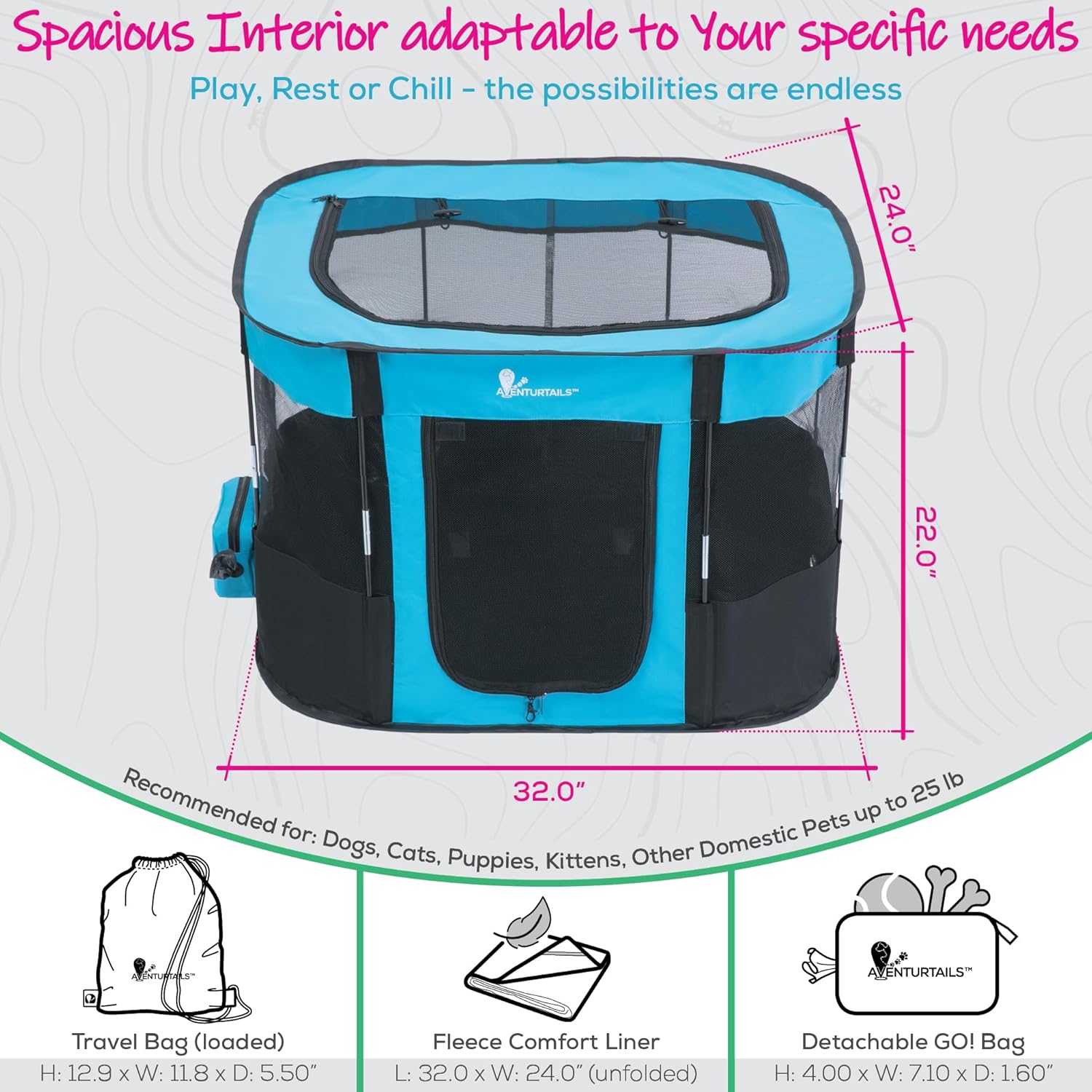 - Model Name: AventurTAILS Portable Pet PlayPen + Liner - BLU-BLK (M)