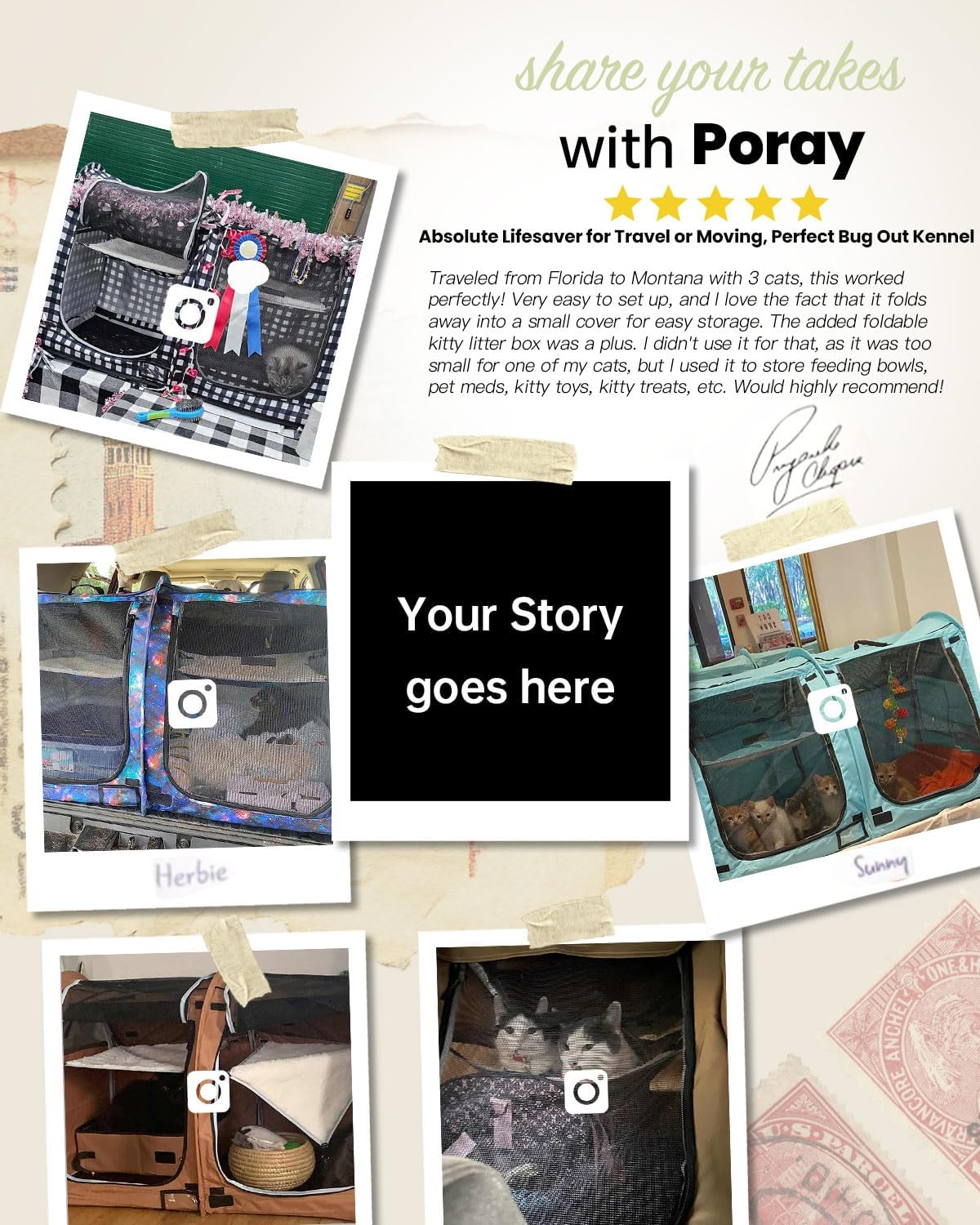 About this item REASONABLE SIZE - The cat condo's size is 100 x 55 x 60 CM ;Weighing just 3.8KG and folds down to a travel size of 68 x 68 x 6 CM. RELIABLE MATERIAL - The fabric outside cage is made of thick Oxford cloth to prevent pets from scratching and tearing, and it is durable. the frame is made of strong glass rod, which will not deform after repeated use. In addition, there are two front and rear doors with zippers, and the inner floor is made of high-strength mesh, which ensures air permeability. The outer layer is a curtain of Oxford cloth, both of which can be rolled up or pasted through the burr on the bottom and the cage. NICE COMFORT - The oversized two-compartment structure provides a spacious and comfortable space for your kitten. Inside the cage, the structure is divided into two symmetrical parts, including a zippered Oxford cloth door separating the two sides. Above each part is a detachable fine and comfortable flannelette hammock, and below is the same flannelette mat. Your cat can rest and play in this happy nest, and we also have a foldable litter box and water bottle which is as complete as an apartment. FOLDABLE & PORTABLE - The frame is made of glass pole, which can be easily folded and stored in the one-shoulder bag we provide. You can carry it on your back when you go out , such as going to park, beach and shopping malls, bringing it to your friends to appreciate the small pets you raise.In some pet exhibitions,you can put two small animals together and compare them carefully. STRONG CUSTOMER SERVICE - The above introduction hope to be helpful to you,our product quality,reasonable price sincerely welcome you to buy,we wholeheartedly for your service;If you have any questions,please feel free to contact us. › See more product details