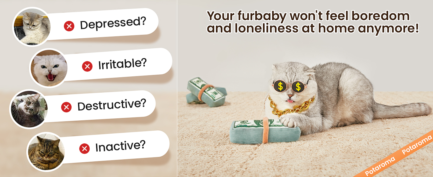 Interactive and Fun Cat Toy: This catnip toy is perfect for indoor play, providing hours of fun for your kitten. The crinkle paper inside makes funny sounds that keep your kitty engaged and entertained, promoting essential exercise and enrichment. Premium Organic Catnip Inside: Our plush toy is filled with organic catnip, guaranteed to excite your cat and stimulate playful behavior. The natural ingredients are calming and perfect for self-soothing, making it an essential addition to your cat's toy collection. Durable and Safe Design: Made from high-quality mesh fabric, this toy is designed to withstand your cat's claw and bite. The mesh helps clean teeth and gums during play, ensuring your little furball stays healthy while they cuddle and play. Cute and Engaging Design: Shaped like a stack of money, this toy is both cute and functional. The unique design will capture your cat's attention, providing a funny and adorable way to enrich their indoor environment. Multiple Play Benefits: This interactive toy promotes healthy exercise and mental stimulation. The crinkle paper and catnip encourage your cat to play, helping to release excess energy and keep your kitty happy and active. Perfect for solo play or with other toys for added enrichment. › See more product details