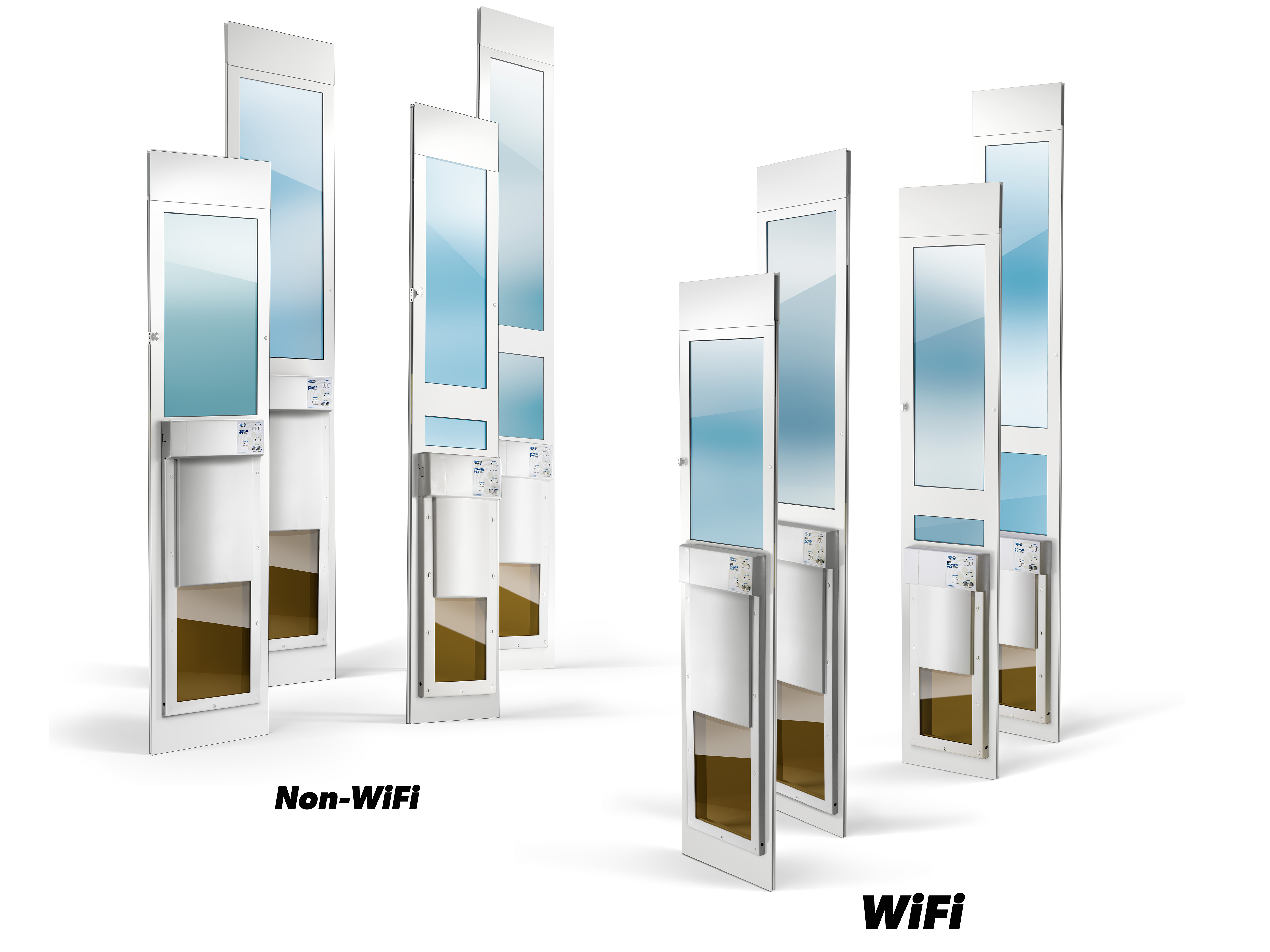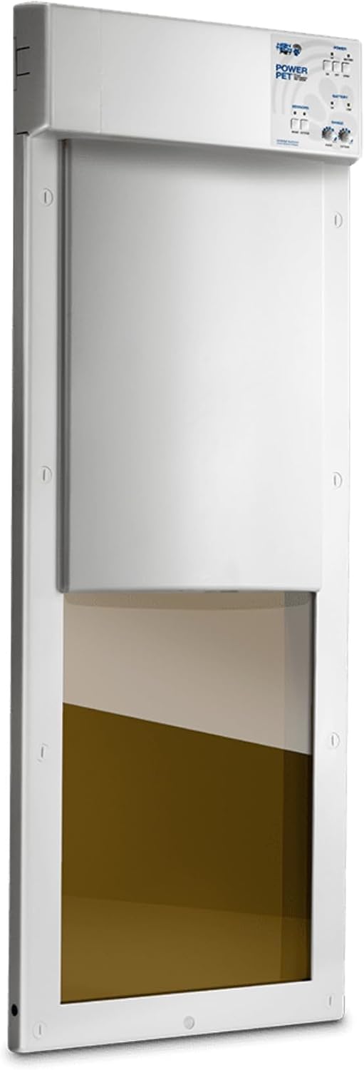 About this item PROVEN RELIABLE: This is the Original, Reliable Power Pet Fully Automatic Pet Door by High Tech Pet Brand. Engineered, Assembled and Serviced in USA. Proven Reliable with over 100,000 units in operation. SAFE GRAVITY CLOSURE with AUTOMATIC ANTI-PINCH SYSTEM: Closing the pet access panel is intrinsically safe because the panel is lightweight and closed by gravity, not the motor. In addition our patented anti-pinch system automatically reverses the panel and drives it upward should it encounter an obstical during closure. HIGH SECURITY: Secure Automatic Dead Bolt Lock protects against intruders. Attractive. Translucent Panel is Intruder-proof, Shatter-proof and Cannot be Forced Open or Lifted From the Outside. 4 WAY ACCESS CONTROL: Select from Enter Only, Exit Only, Enter & Exit or Closed and Locked. DUAL SENSOR SYSTEM: Control Individual Inside and Outside Activation Ranges from 0 to 30 feet. DIRECTIONAL SENSING: Unique Directional Sensing System Opens the Door Only When Your Pet is on a Direct Approach, Not When Just Wandering by or Sleeping Next to the Door. WIND AND WEATHER RESISTANT: Hermetically Sealed Panel is 100% Air Tight and Draft Free, Even in Hurricane Force Winds. SMOOTH, FAST and QUIET: Developed by expert electro mechanical engineers to open in time for the fastest dogs with whisper quiet operation. MEDIUM PANEL SIZE: 8-1/4" by 10" high. For Pets up to 100 lbs. POWER: Powered by AC Adapter or Optional Rechargeable Battery. A BRAND YOU CAN TRUST: Since 1986 High Tech Pet has been the leader in creating and manufacturing the highest quality, most innovative automatic pet doors. We support our USA assembled products with live, friendly, knowledgeable, HUMAN customer service experts to assist you when you need us. Show more › See more product details