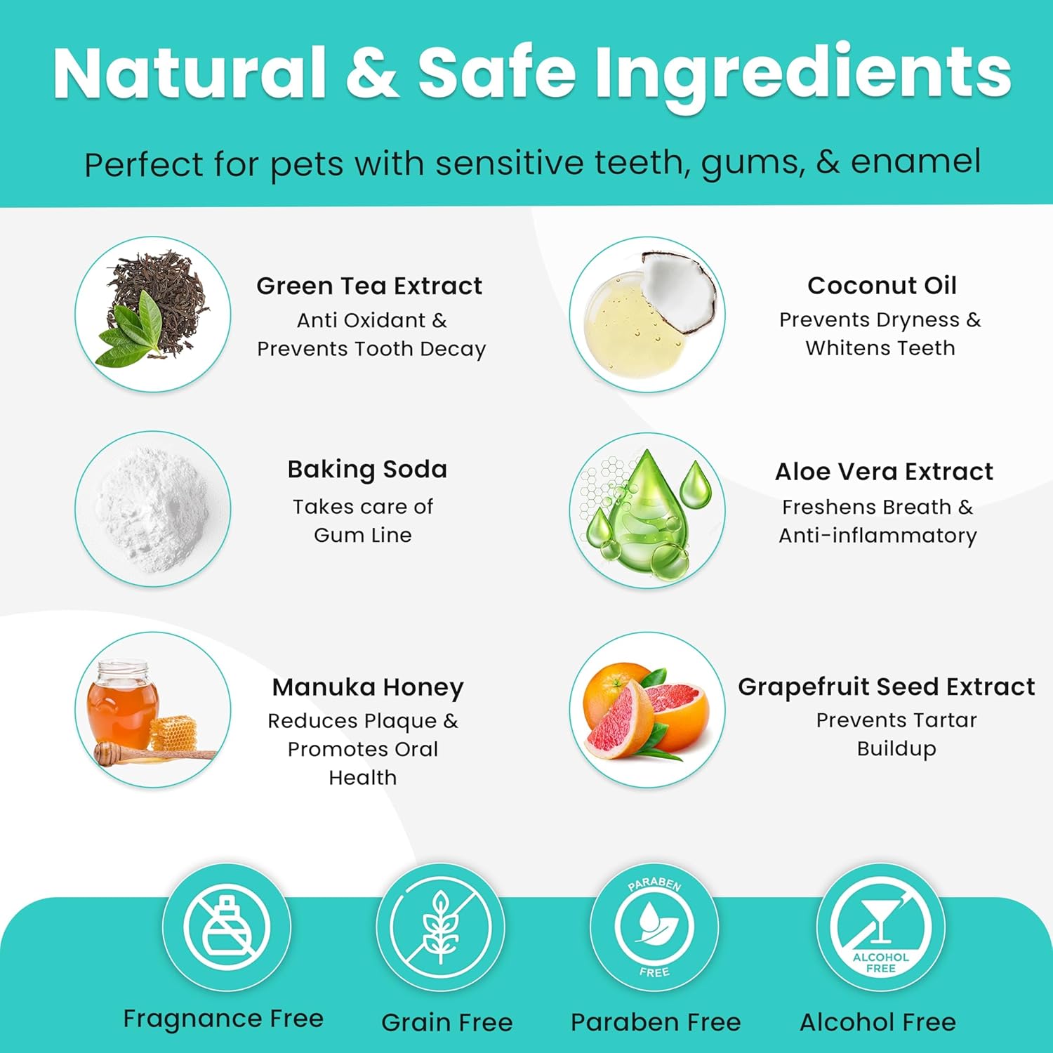 Natural Ingredients, Vet-Approved Care: Made with safe, natural ingredients, our vet-approved dog teeth cleaning wipes ensure effective oral hygiene without harsh chemicals. A must-have for puppy care and dental health. Dual Finger Anti-Slip Design: Featuring a unique dual-finger anti-slip design, these pet dental wipes offer a firm grip and better control. Perfect for removing plaque, tartar, and improving your dog or cat’s dental care routine. Gentle, Non-Toxic Formula: Hypoallergenic, alcohol-free, and paraben-free, our wipes are safe for sensitive pets. Ideal for dogs, cats, puppies, and kittens for a thorough yet gentle clean. Fits Pets of All Sizes: Designed for small breeds, large dogs, cats, and even kittens, these dental wipes provide a versatile solution for all your furry companions. Easy 3-Step Cleaning: Simply wrap the wipe around your finger, gently massage teeth in a circular motion, and repeat. No water or rinsing needed – quick and effective dental care for your pet! › See more product details