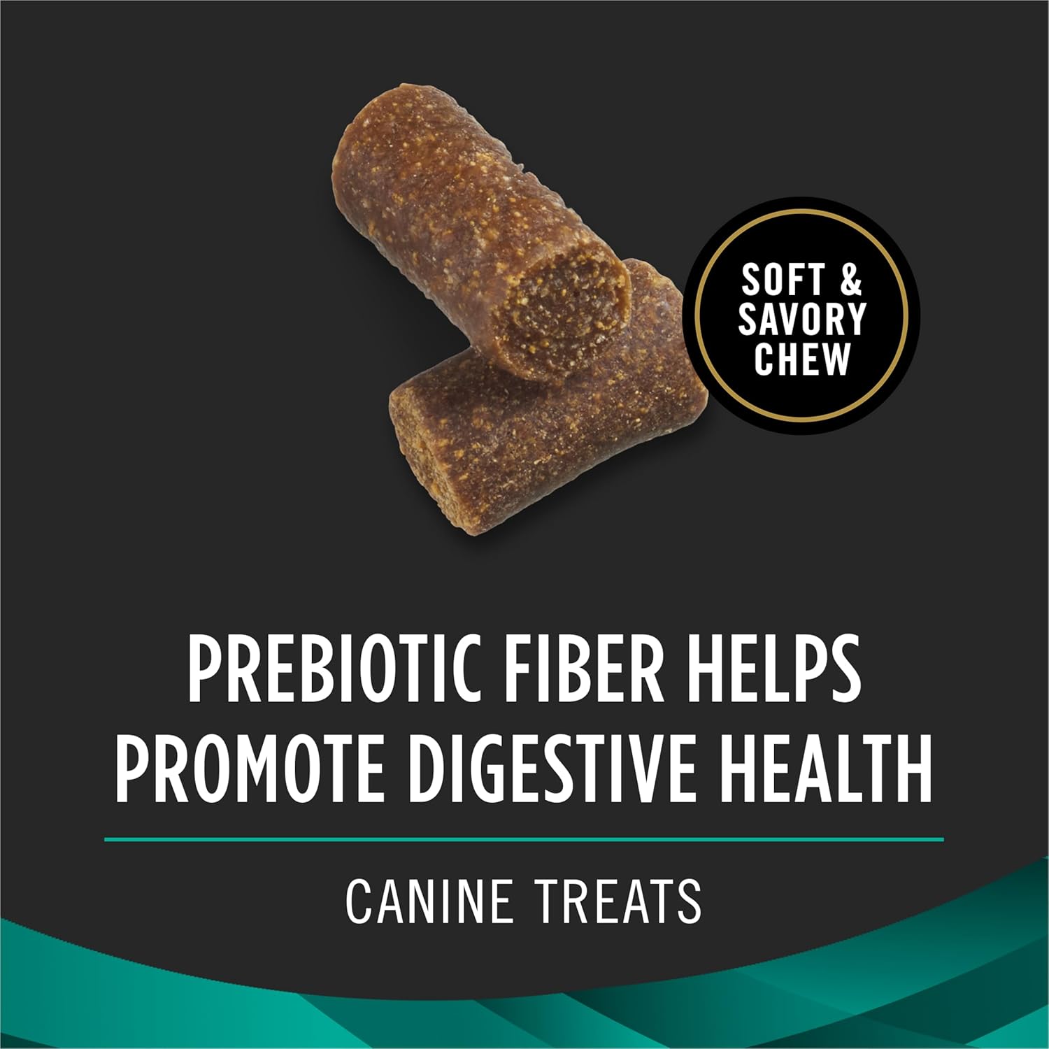 If you’re concerned about your dog’s digestive health, talk to your veterinarian to see if Purina Pro Plan Veterinary Diets Digestive Health Bites soft chews for dogs can benefit your canine. These soft dog treats contain natural prebiotic fiber to help promote digestive health. And with real chicken as the number 1 ingredient and a chewy and savory texture, your dog will love these with real meat dog treats as much as you enjoy giving them to him. Each serving of these with chicken dog treats offers them vitamins C and E to offer immune support for dogs. Meanwhile, your dog will love the great taste of these chewy dog treats and you’ll appreciate that they’re made with no artificial colors or flavors. The science behind our therapeutic diets represents a collaboration between Purina nutritionists, researchers and veterinarians. Talk to your veterinarian about giving your dog digestive health support with Purina Pro Plan Veterinary Diets Digestive Health Bites soft chews for dogs.