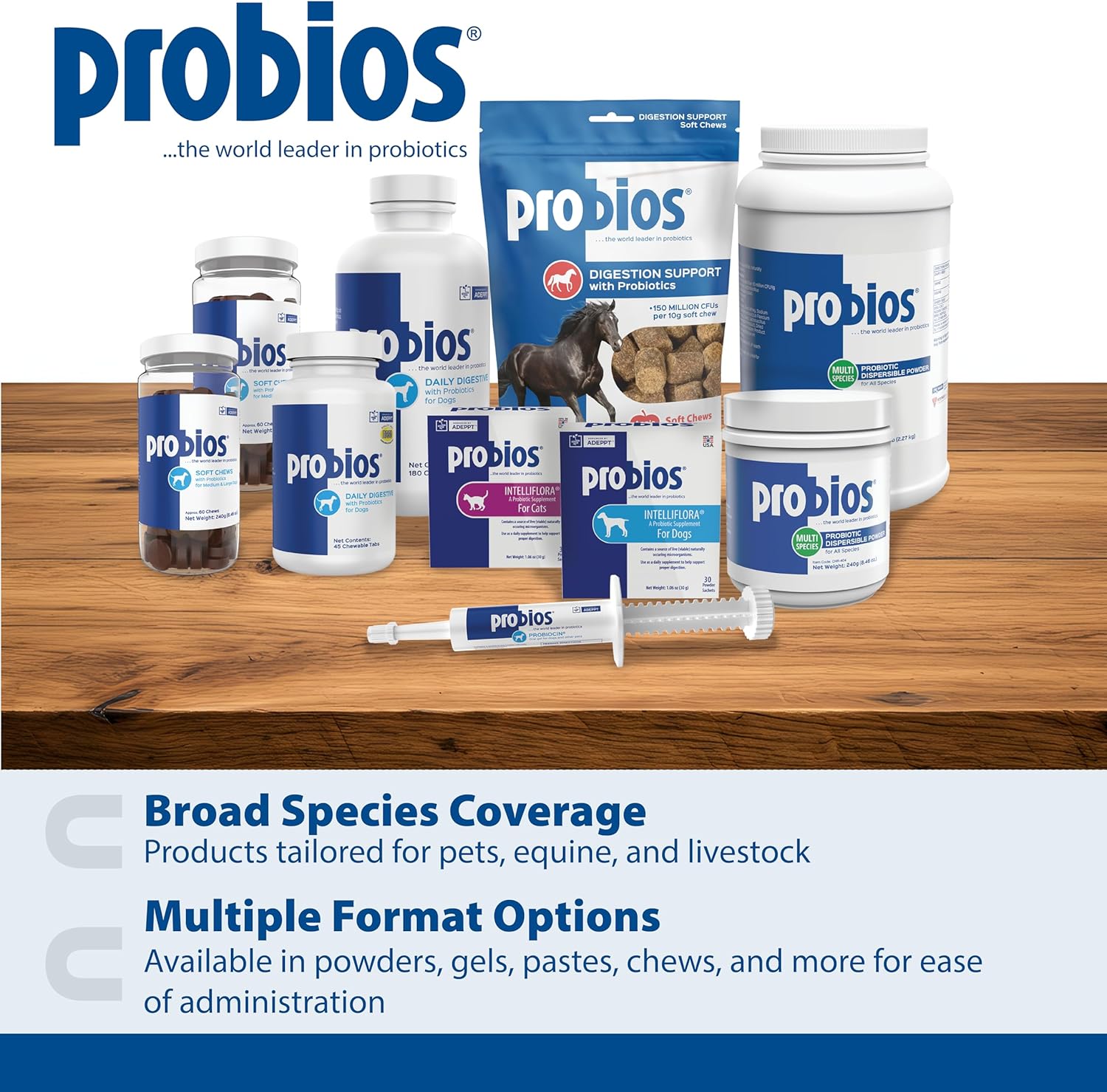 Probios powder contain a source of live (viable), naturally occurring microorganisms. Probios powder is used to help maintain a healthy digestive system in animal from newborns to adults. Use Probios at weaning and other diet changes, during and after antibiotic therapy, during hospital treatment. Probios helps maintain a healthy appetite and should be used as part of a health maintenance program.