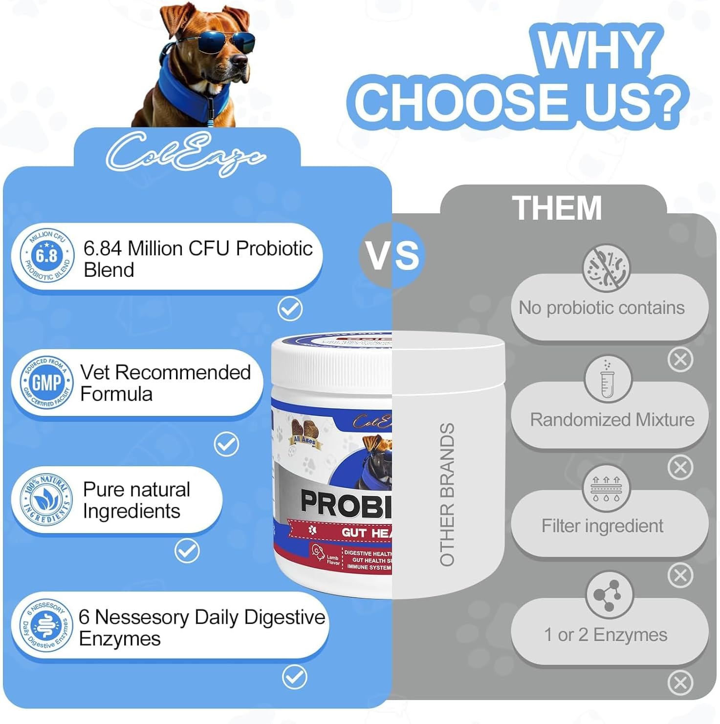 About this item Support Digestive and Gut Health: Our dog probiotic contain 6 billion CFUs and 12 strains of flora that support your pet's tummy. This probiotic for dogs is specifically formulated to maintain a healthy gut in dogs of all sizes. They help combat common issues like diarrhea, constipation, and upset stomachs Support Immune and Overall Health: A healthy and balanced gut environment makes a healthy immune system. Our holistic formula can benefit your pet's overall health by strengthening the immune response. It can improve appetite and provide energy and vitality to growing and senior pets Formulated for All Dogs: Created with every dog in mind, our probiotic chews for dogs are perfect for all ages and sizes, it can improve appetite and provide energy and vitality to growing and senior pets, each chew is packed with essential dog probiotics and digestive enzymes, along with fiber ensuring your canine companion gets the full spectrum of digestive support Enhances Nutrient Absorption: Our probiotic for dogs digestive health are made under strict quality standards to ensure safety, purity, and effectiveness for gut and immune support, Packed with digestive enzymes for dogs, these chews support food breakdown, digestion, and nutrient absorption for better energy, immunity, and well-being Delicious and Healthy: Our probiotic chews are based on real lamb and are perfect for picky eaters. Each bottle of dog probiotic chews contains 150 tablets.This not only means continuous replenishment over a long period of time,but also makes one bottle of probiotic chews for dogs enough to cover their needs for for more than a month,reducing the hassle of frequent purchases › See more product details