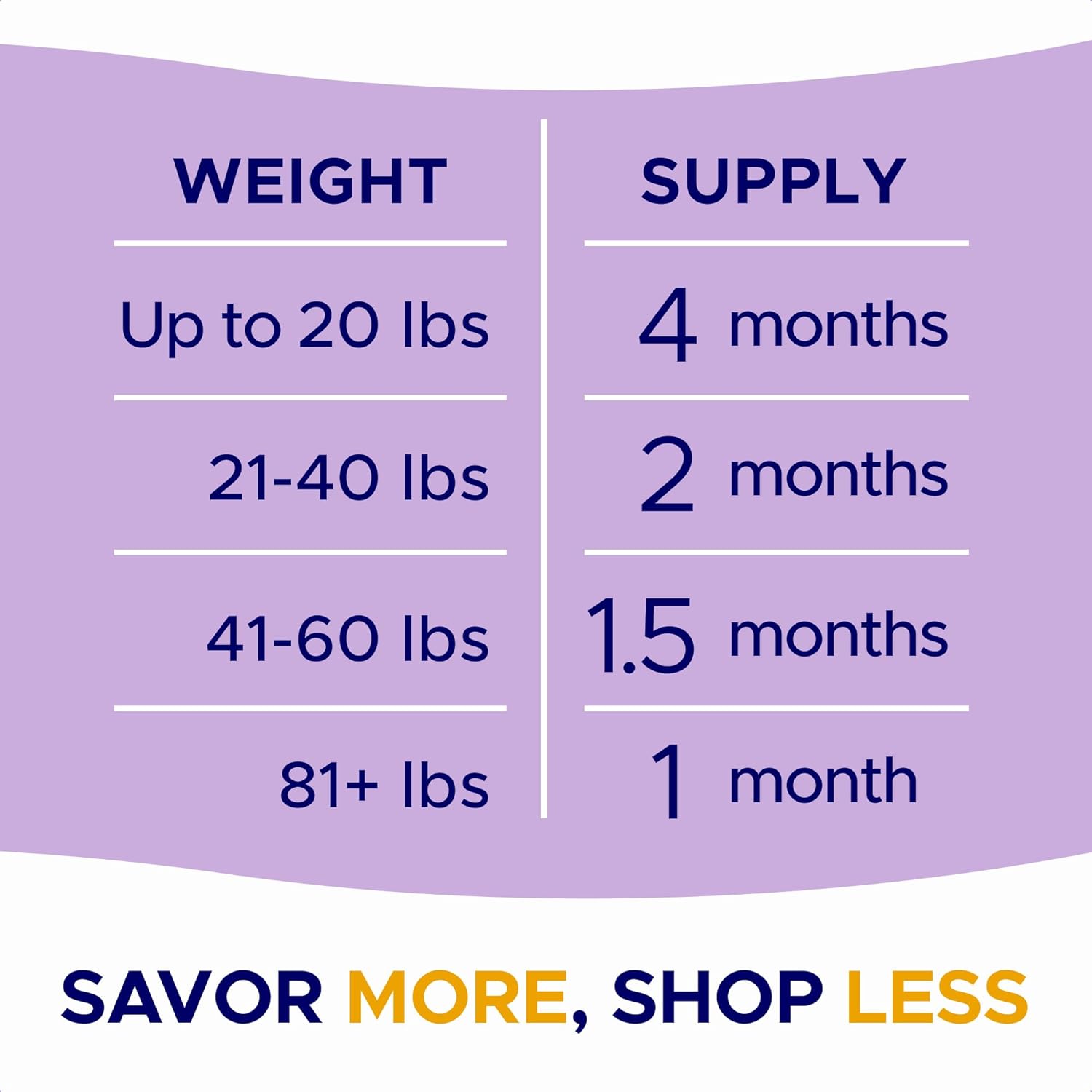- Directions: Serve daily, amount based on dog's weight Up to 20 lbs. - 1 chew, 21 to 40 lbs. - 2 chews, 41 to 80 lbs. - 3 chews, 81 lbs and over - 4 chews.