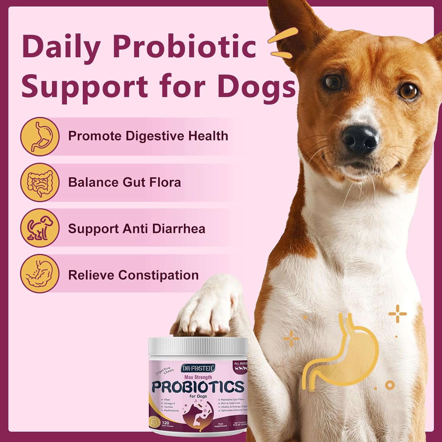 β’ Direct-acting Spore Probiotics Our dog probiotic has multiple spore strains that survive stomach acid to target deep intestine, more effectively support anti diarrhea for dogs, dog gas relief, constipation and bad breath, promoting stool quality