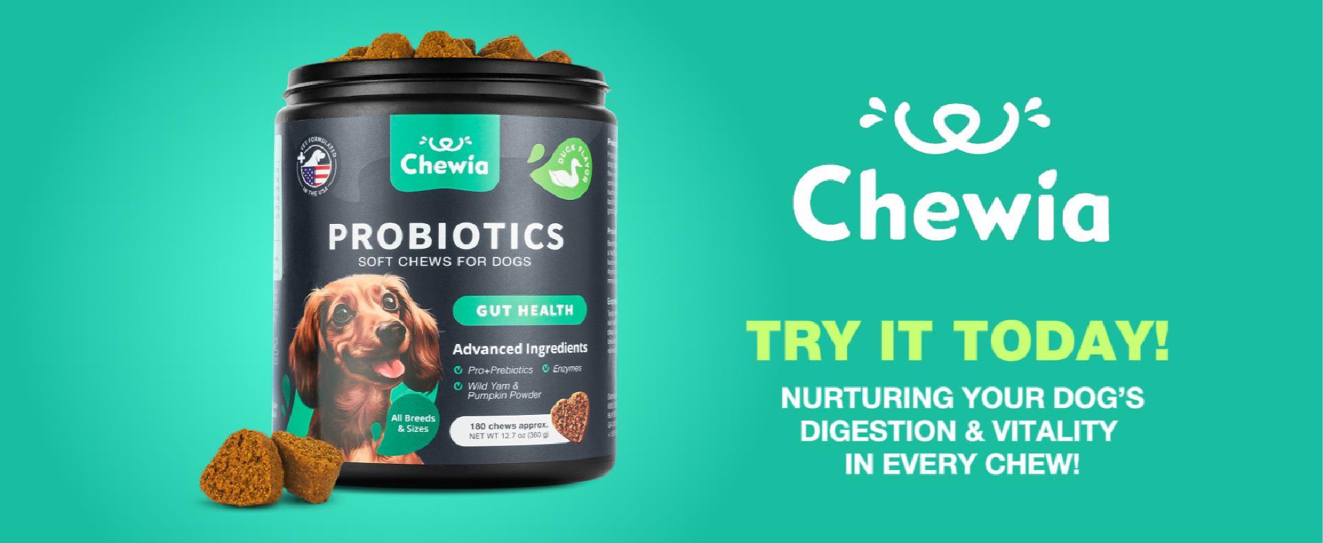 About this item DIGESTIVE SUPPORT FOR DOGS: Pet probiotics for dogs aid improve digestion, promote bowel health & proper stool quality. Our chewable probiotic for dogs supports appetite & gut health for dogs HEALTHY SKIN & COAT: Digestive probiotics for dogs help with seasonal allergies, skin itching, bad breath, paws licking. Also, dog gut health probiotics support healthy yeast production SUITABLE FOR EVERY DOG: Our sugar-free, soft probiotic treats in delectable duck flavor cater to all breeds, sizes, and ages. Your furry friend will adore our puppy probiotic chews! NUTRIENT-RICH FORMULA: Our dog probiotic chews contain a powerful combination of wild yam, pumpkin powder, digestive enzymes to enhance nutrient absorption, bolster immunity & promote overall health CRAFTED WITH CARE: We prioritize your pet's well-being and joy, crafting premium products for your furry companions. For more details about our probiotic dog chews, please don't hesitate to contact us βΊ See more product details