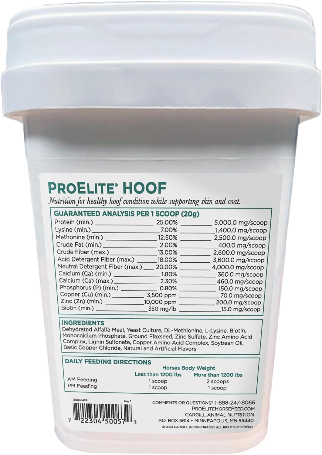- Directions: "Daily Feeding Directions Less than 1200 lbs. AM Feeding 1 scoop PM Feeding 1 scoop More than 1200 lbs. AM Feeding 2 scoops PM Feeding 1 scoop"