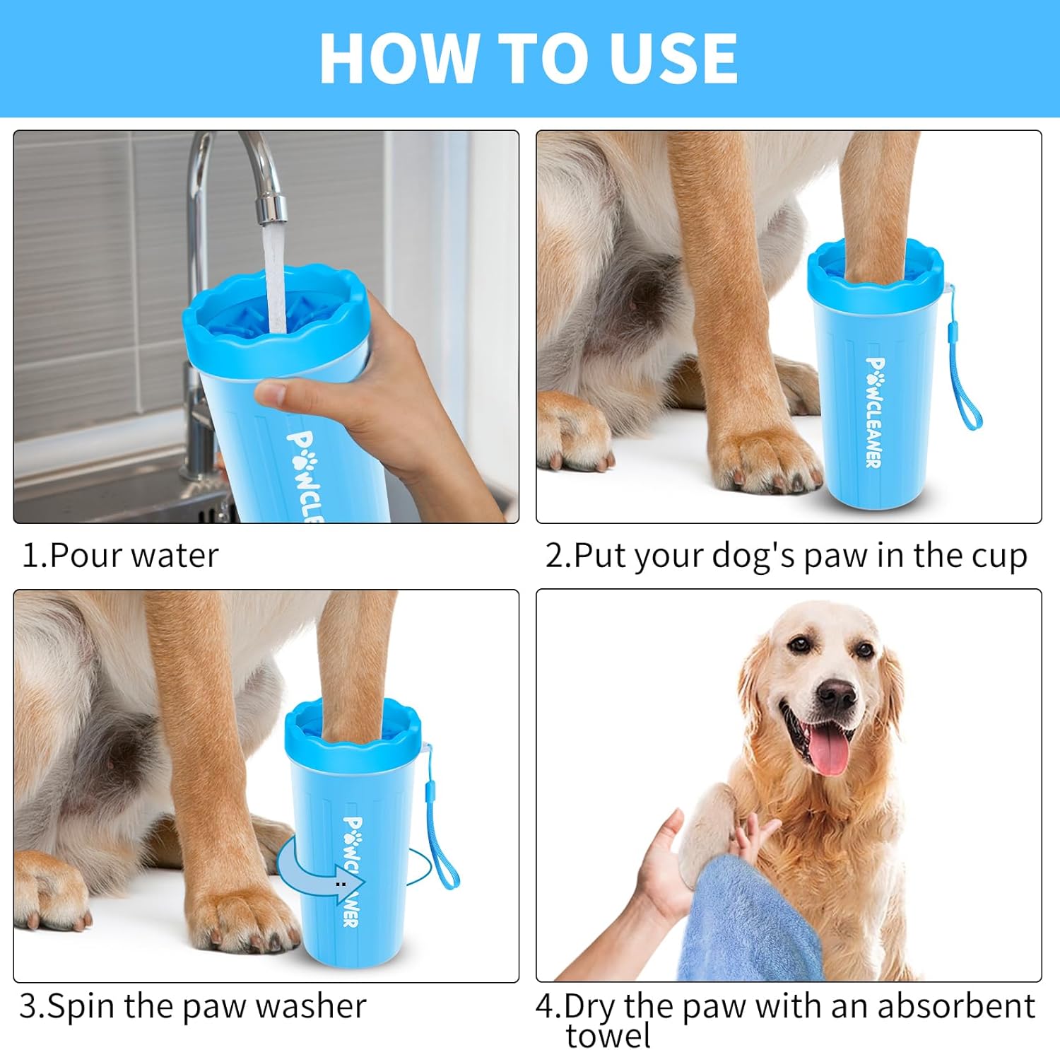 - Directions: 1. Pour clean water into the cup. 2. Put the dog's paws into the cup. 3. Rotate the cup for a while to remove dirt from the paws. 4. Repeat for the remaining three paws.