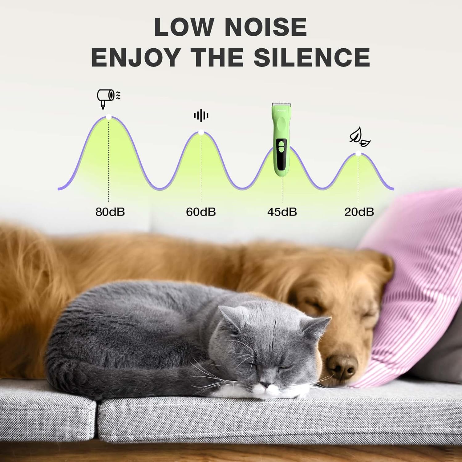About this item 【Upgraded Professionall Blades】9MM Length blade is combined with ceramic movable blades for efficient trimming. Compared with the traditional replacement head, this replacement blade avoids the trouble of guide combs stuck or pulling the pet hair and makes cleaning and trimming easier. 【Low Noise & Low Vibration】Petopia dog grooming clippers adopt a ceramic blade design, greatly reduces friction noise. In addition, dog shaver also use high-quality motors and ultra-short motor shafts to reduce noise to 45dB and will not scare your dog and cat. 【Long-Lasting and Cordless Design】The USB rechargeable dog clippers can be used for 4 hours after fully charged. So you don't have to worry that it will stop working. Wireless design, dog grooming kit trim your pets wherever you want! 【Powerful & Easy to Use】Dog grooming clippers have 3 adjustable speeds (6000/6500/7000RPM). Three-speed rotary motor for beginners, allowing you to tailor the trimming experience to your pet's noise tolerance and hair thickness. 【Best Safe Grooming Kit For Your Dog】Petopia dog grooming kit come with must tools (Dog Clippers+Curved Scissors+Steel Comb+Manual). Dog Grooming Kit Clippers is to suit small and medium-sized dog or cat full-body trimming. 【NOTICE】To avoid the cutter head being blocked by hair and unable to cut, please clean the hair on the cutter head in time during the trimming process. › See more product details