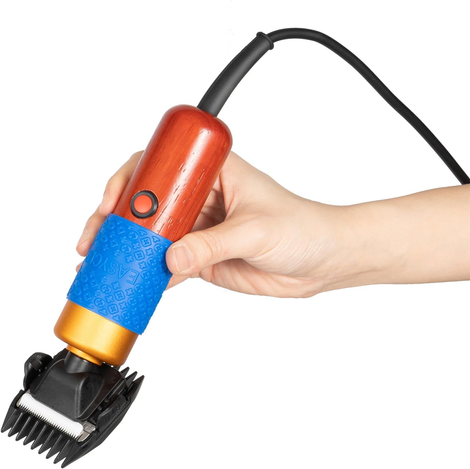 DescriptionAre you still worried about your pet's long and messy hair? Now we introduce you to an amazing pet clipper that will give your pet a new look! This clipper not only has the characteristics of simple use, but also is safe and reliable. Its 36W power can quickly cut and trim pet hair, allowing you to complete it in a short time, saving you time and energy. In addition, it is easy to clean and maintain. If you want to provide optimal care for your pet, it is an indispensable tool for you. Buy it now and make your pet the brightest focus!SpecificationColor: MulticolorHandle Material: Wood, Aluminum AlloySurface Treatment: PaintingBlade Material: 30-tooth Zirconia Blade + 35-tooth Stainless Steel Blade FramePower Source: Plug-in ElectricAdapter Plug: US PlugVoltage: AC100-240V, 50/60HzPower: 36WSound-pressure Level: ≤ 60dBRotating Speed: 2000-6600rpmPower Cable Length: 2.87m/9.4ftComb Size: 6.6*4.4cm/2.6*1.7in (9/13mm); 4.7*5.5cm/1.85*2.17in (3/6mm)Clipper Size: 17.5*4.3cm/6.9*1.7inHandle Diameter: 4.3cm/1.7inCarrying Case Size: 27.5*21*6cm/10.8*8.3*2.4in Package Size: 29*24.5*7cm/11.4*9.7*2.8inNet Weight: 0.95kg/2lbsGross Weight: 1.1kg/2.4lbsPackage Included1* Pet Clipper1* Replaceable Blade1* Cleaning Brush1* Carrying Case2* Guide Combs1* English ManualNotes1. Please read the operating manual completely before use. And pay particular attention to the safety instructions included.2. Before use, please add lubricating oil (white oil only) to the blade according to the manual to extend its service life.3. Please allow the slight color difference caused by the shooting light and 1-3cm error due to manual measurement, and make sure you do not mind before ordering.