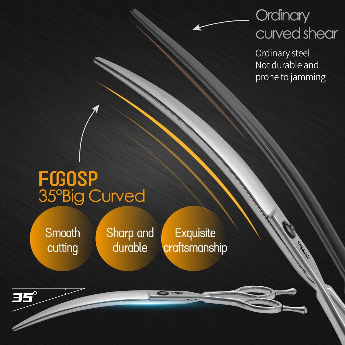 FOGOSP is a professional Pet Grooming Scissors Manufacturer, We focus on Hair Cutting Shears and Dog Grooming Scissors for nearly 20 years and we do every detail diligently. FOGOSP focus on high quality pet grooming shears, each pair of scissors are made of high-quality stainless steel, professional technical master manual polishing production, after more than three times of careful testing , to ensure that each pair of scissors delivered to your hands are perfect products. Our mission is : Let pets more beautiful Choosing FOGOSP, Let you grooming easier ! FOGOSP products : Straight grooming scissors, Curved grooming scissors, Thinning grooming scissors, Blender scissors, Chunker grooming scissors, Curved Blender scissors, Curved Chunker grooming scissors, Rounded scissors for dog grooming face and paws and so on.
