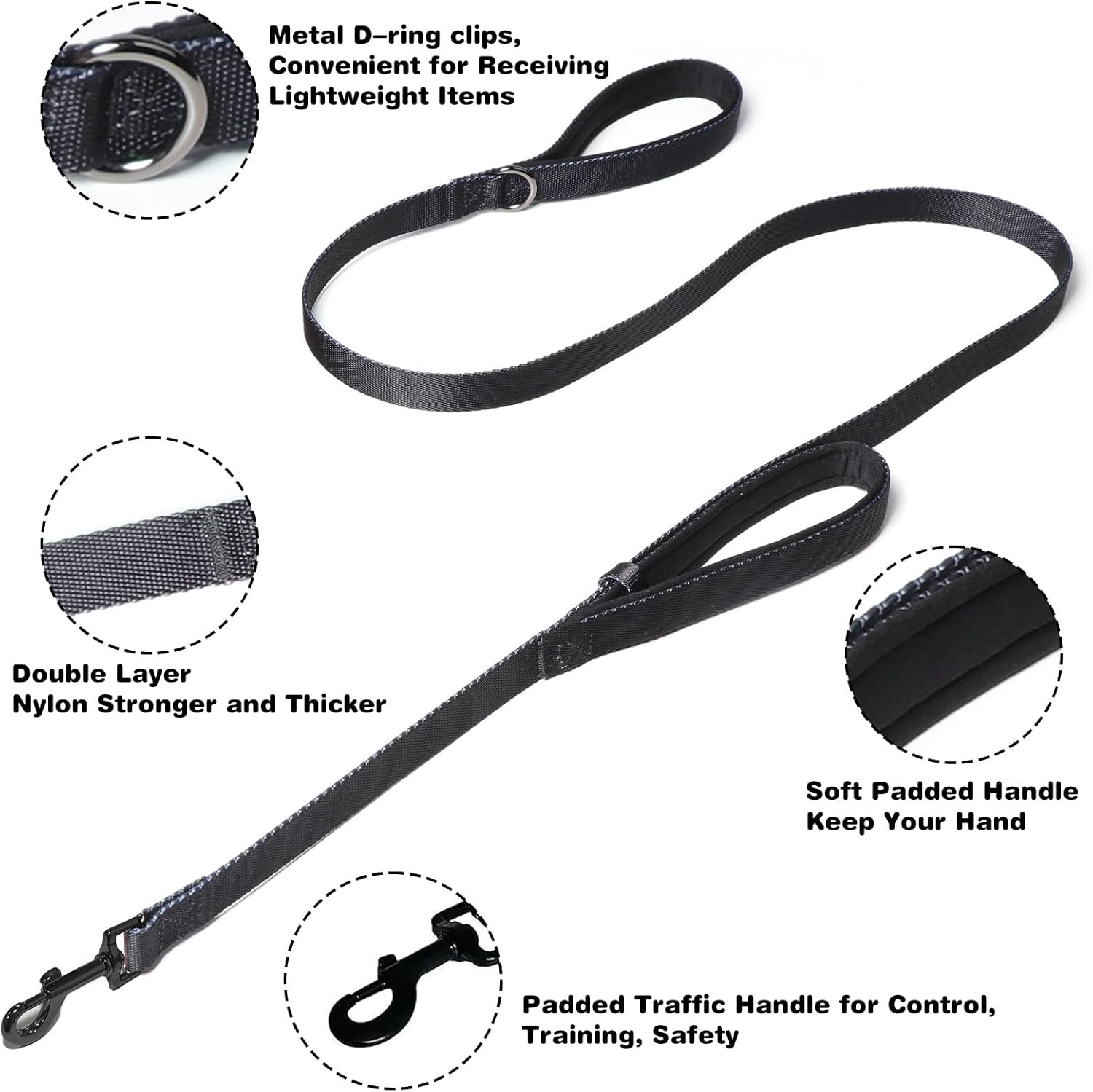 About this item 【Professional Dog Training Leash】:Includes the 5ft professional dog training leash, which is perfectly designed, allowing you to use it in conjunction with this dog collar for training. 【Gentle & Safe Guidance】 Prong Collar for Dogs, the perfect training tool for your furry friend! This prong collar is designed to provide gentle yet effective control while walking or training your dog. 【Effective correction of training】 Collar is also known as a pinch collar for dogs, When your pet dog pulls, gentle pressure will be applied to its neck, effectively stopping the pulling behavior without causing any harm to the pet.With a silicone cap, it can provide better protection for your dog. 【Quick Release】:The dog collar is equipped with stainless steel buttons, making it easier to put on and more convenient. It provides a safe and comfortable collar for dogs. The high-quality stainless steel fasteners are sturdy and durable, resistant to rust and prone to breakage. 【Support You Can Count On】:No-pull dog collars are suitable for large, medium and small dogs.. The adjustable design allows you to customize the fit for your dog's comfort and safety. Say goodbye to pulling and tugging during walks with the Prong Collar. › See more product details