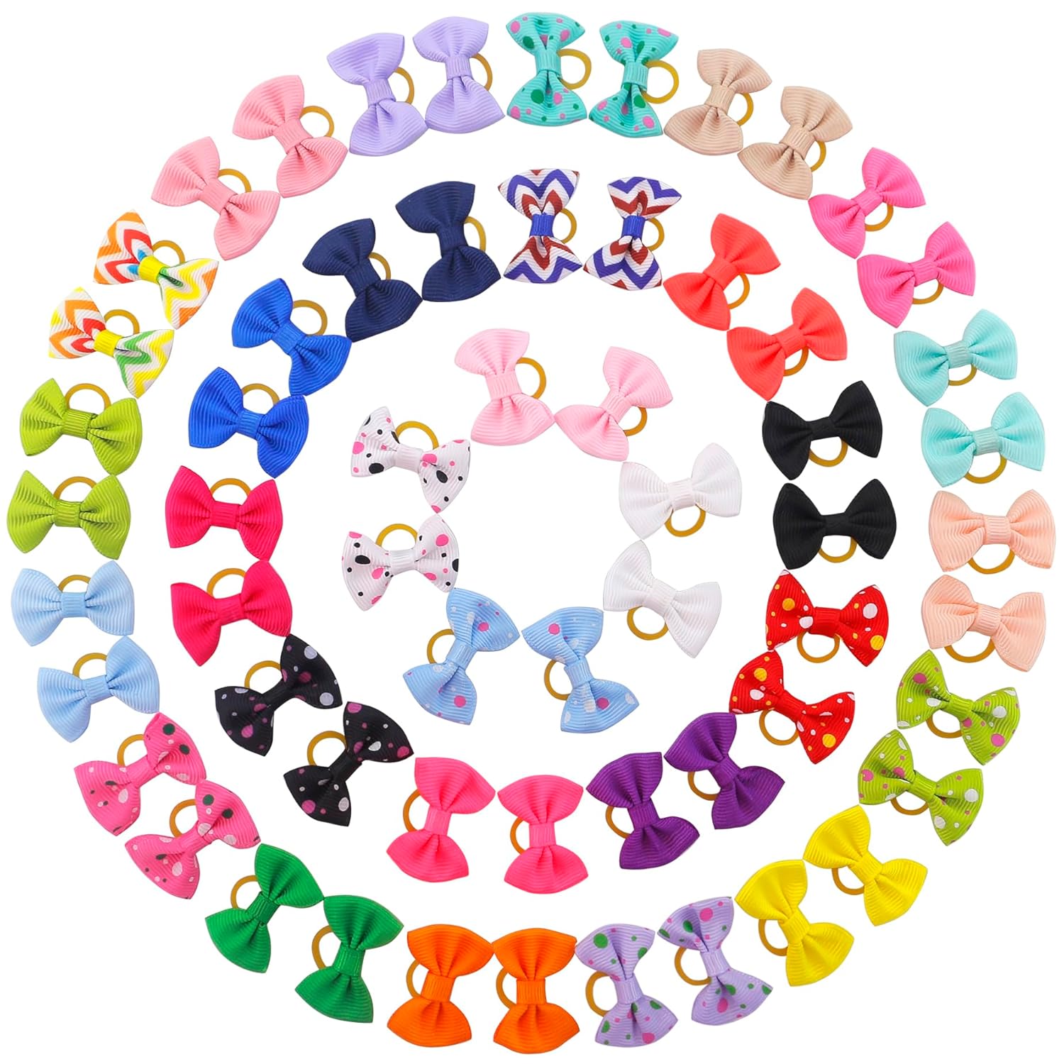 About this item Dog bows size around 1.5 inch with no breakage of rubber bands Bows for dogs made of variety of vibrant colored grosgrain ribbon Dog hair bows for small dogs girl with 30 colors in pair for puppy Cute puppy bows with solid dots patterns for pet dogs grooming Dog bows small size dog with mini rubber bands puppy bows for small dogs girl › See more product details