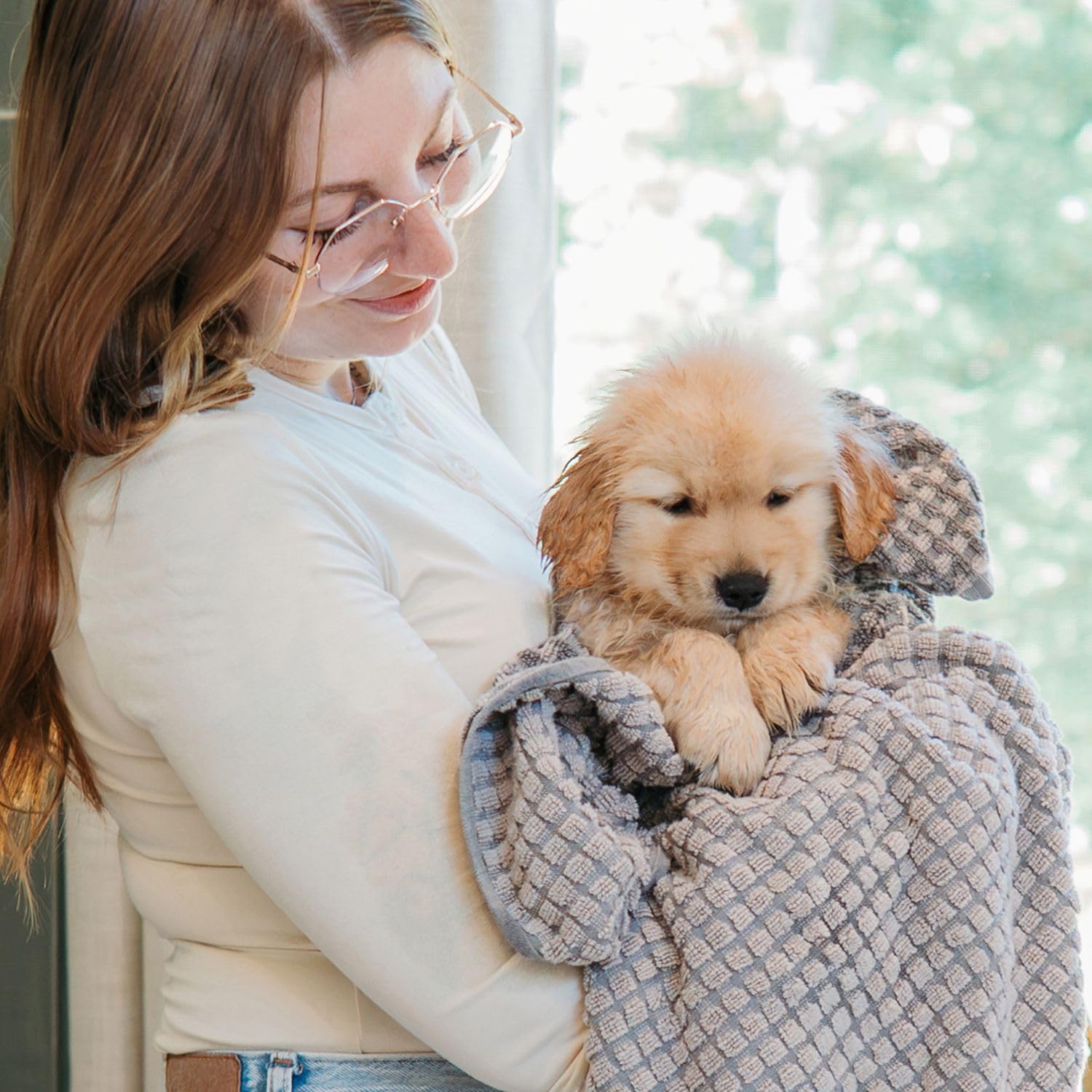 Bath time is easy, gentle, and mess-free with the Puppy Love Gentle Bath & Grooming Set by Veterinary Formula and Tweezerman. Designed for small dogs, puppies, kittens, and cats, this complete pet bath kit includes everything you need to keep coats clean, soft, and shiny. Start your routine with the Tweezerman 2-in-1 Dog Bath Brush, a smart shampoo dispensing brush that lets you apply Puppy Love Shampoo directly as you scrub. The soft bristles work up a rich lather while massaging the skin to lift dirt and loose fur, making washing easy and relaxing for your pet. The Veterinary Formula Puppy Love Tearless Shampoo is mild, pH-balanced, and safe for sensitive skin. It gently cleans without drying and leaves behind a soft baby powder scent that keeps your pet smelling fresh and cuddle ready. Finish with the Tweezerman Small Slicker Brush, perfectly sized for puppies and small pets. The flexible pins gently smooth fur and detangle knots for a silky, shiny coat without tugging or discomfort. Ideal for removing loose fur and maintaining a soft, fluffy finish between baths. These grooming essentials make bath time enjoyable, leaving your pet clean, soft, and snuggle-ready.