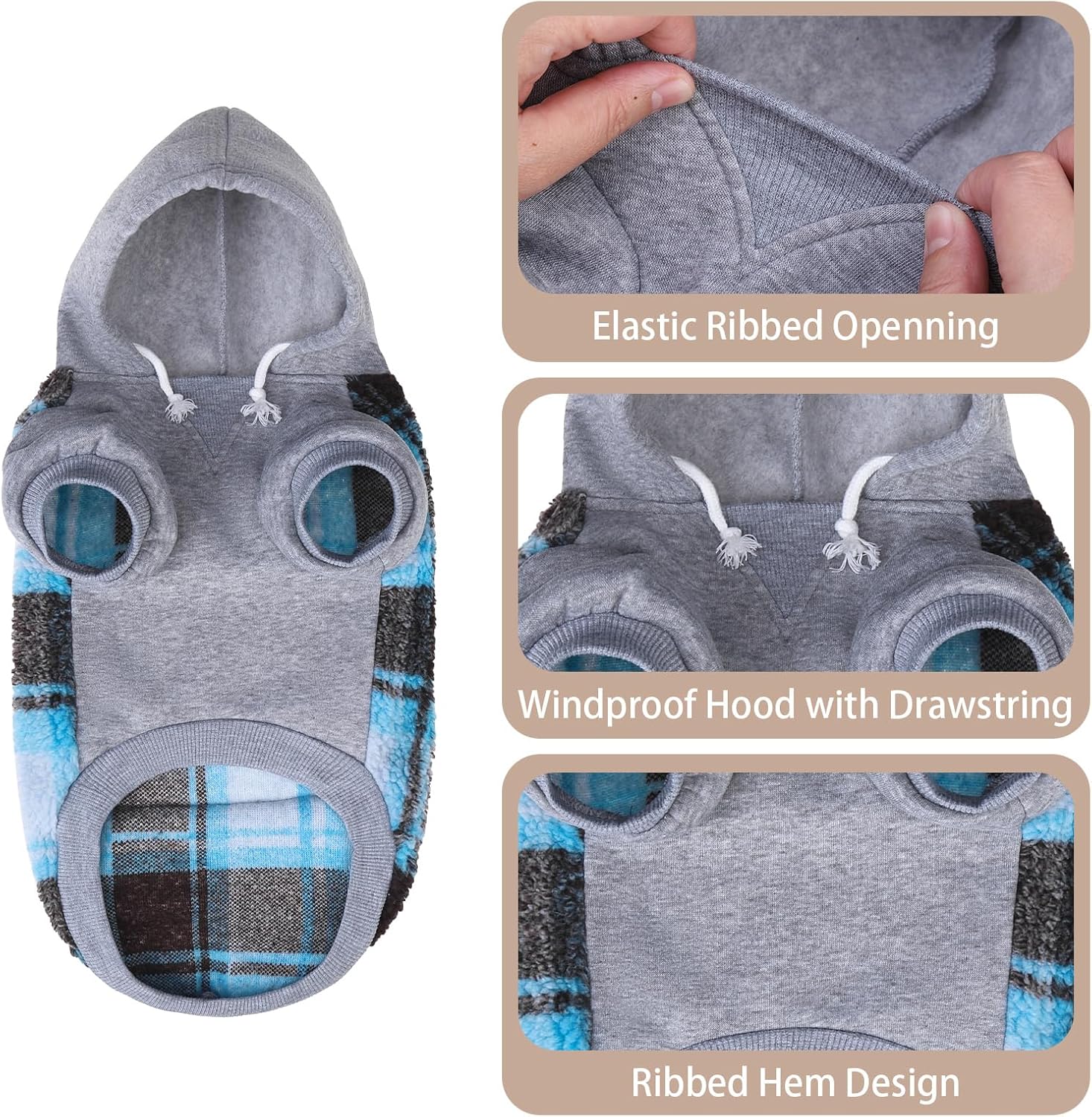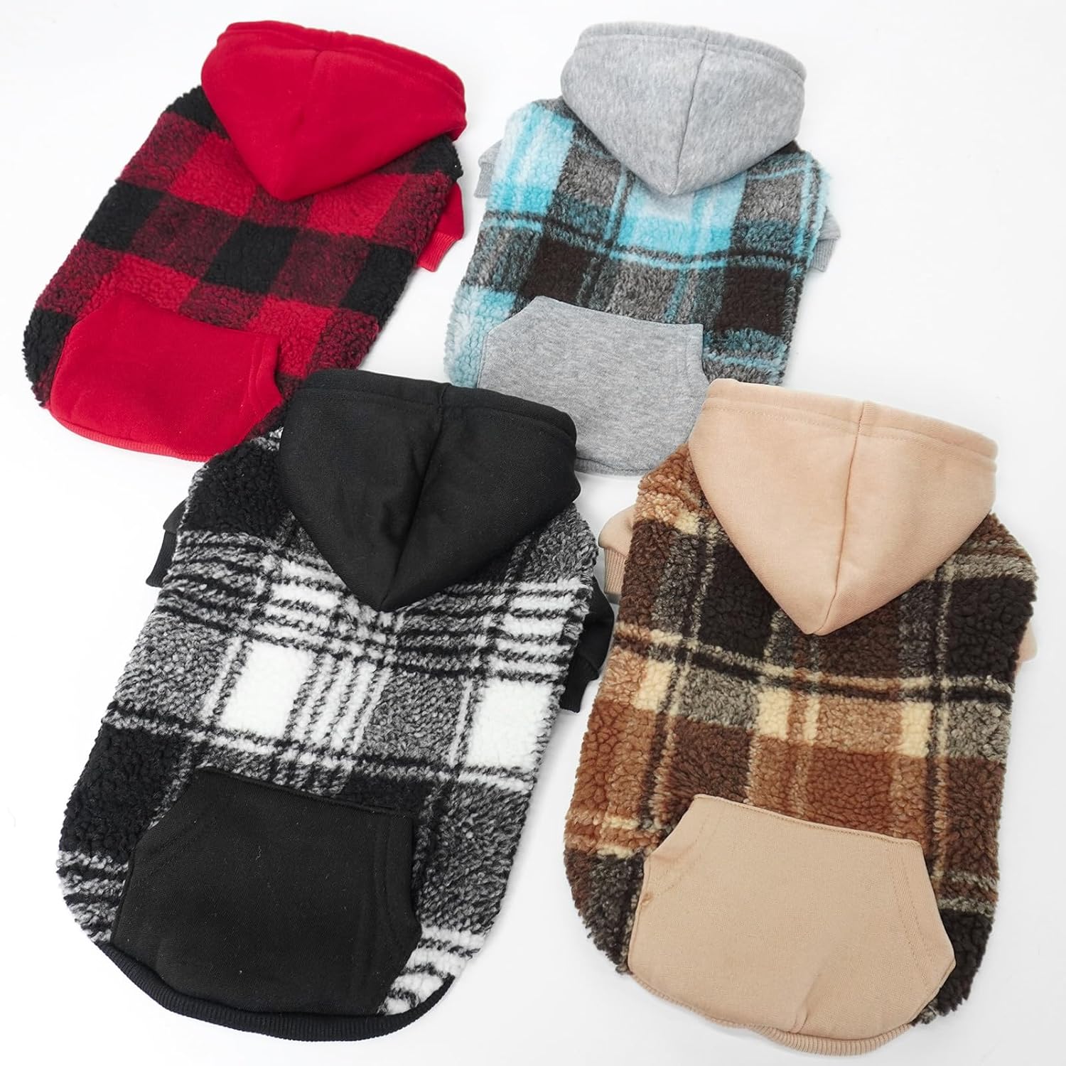 About this item MULTIPLE CHOICES: This dog hoodie is available in 7 sizes and 4 colours for you to choose from, suitable for small, medium and large breeds. PLEASE NOTE: Different brands may have different sizes, for a better fit, please measure your dog before purchasing. Please consider the dog's chest girth and back length in combination. STYLISH & WARM: This coat is made of lambswool and fleece pieced together for a soft and cosy feel and stylish pattern. The furry material makes your dog more adorable, and it comes with a windproof hood to keep your pet warm from the cold wind. Perfect for keeping out the cold in autumn, winter or early spring. LEASH HOLE DESIGN: Reserved leash hole for attaching the leash to a collar or harness. Easy to operate, no need to worry about how to take your dog out when it's cold! Great for daily walks, camping or hiking. MOVE FREELY: Our Puppy Hoodie is made with practicality and comfort in mind, with stretch material on the neck, cuffs and hem. It is easy to put on and take off without making your dog feel tight and uncomfortable. Allow your dog to move freely and go to the toilet without any inconvenience. PRACTICAL POCKET: A small pocket is designed on the back, which adds cuteness as well as practicality to the clothes. When you go out, you can carry some small items such as keys, poop bags and dog snacks. Let your dog be your little helper. › See more product details