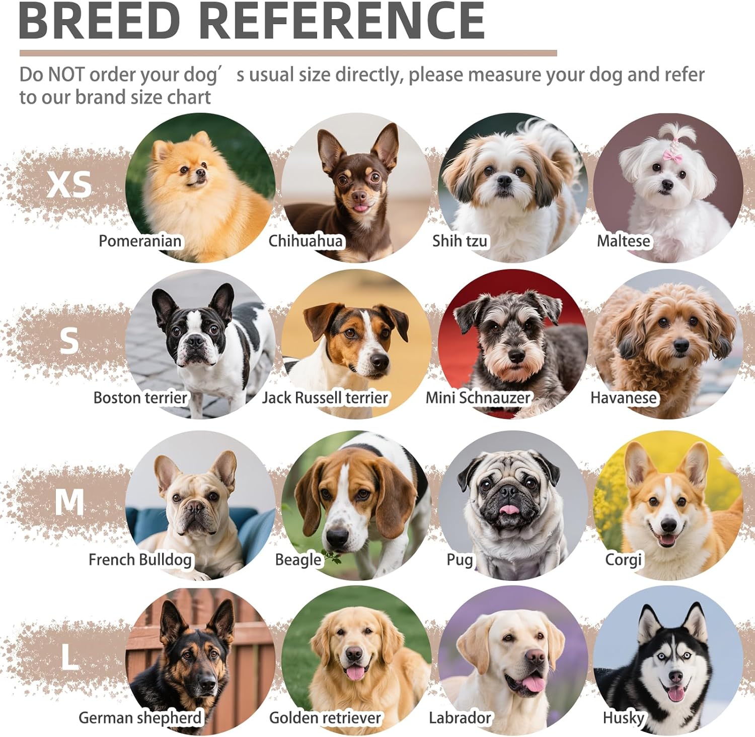 About this item - Chest girth 17.5"-24", strap width 3/4". Recommended to small to medium pets, such as French Bulldog, Beagle, Pug, Boston Terrier, Jack Russel Terrier, etc. Sizing does NOT directly correspond to your pet's breed or weight, and do NOT order the usual size directly, please always measure your dog and refer to our brand size chart - Both sides of the harness are like a triangle structure, which can wrap around the dog's body perfectly, you will feel good control during use. And the stress is on the dog's chest, not its neck, so this harness allows dogs to breathe freely - The harness is very easy to put on/take off. Just let your dog's front leg in, then close the buckle, adjust the strap to fit perfectly, and done! It makes your travel faster and more convenient - High-quality nylon fabric with high-density webbing to add durability. The webbings have been widened, and the surface is very smooth, so the harness's comfort will be better. Your dog will enjoy the daily walk in this comfortable dog harness - Each harness is equipped with a metal ID tag, and the front is a cute paw pattern, while on the back, you can engrave whatever you want, such as the dog's name and so on. It does not corrode as easily as wooden labels and is durable. You can also remove it when washing the harness › See more product details