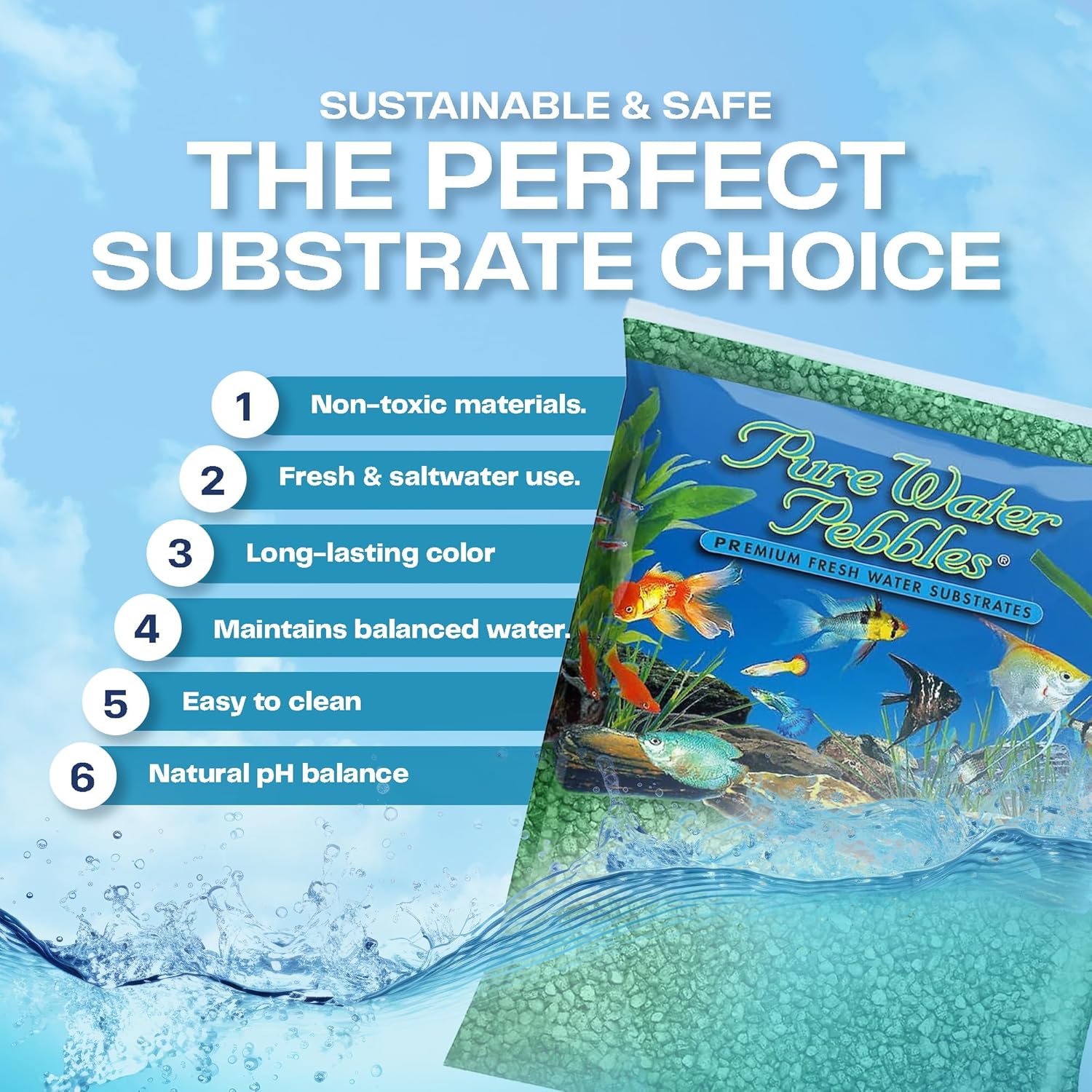 Pure Water Pebbles Premium Freshwater Substrates Natural Decorative Gravel 100% Acrylic Coating, Colorfast Non-toxic, will not alter the chemistry of your aquarium water Recommended Uses: Fresh & Saltwater Aquariums, Ponds, Terrariums, Gardens, Potted Plants, Vases, Ash Trays, Crafts & Hobbies › See more product details