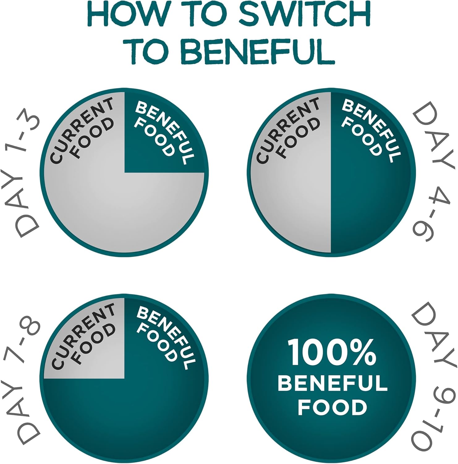 - Directions: When switching your dog to Beneful IncrediBites dog food, please allow 7 - 10 days for the transition. Gradually add more Beneful IncrediBites and less of the previous food to your dog’s dish each day until the changeover is complete. This gradual transition will help avoid dietary upsets. Provide adequate fresh water in a clean container daily. For your pet’s health, see your veterinarian regularly.