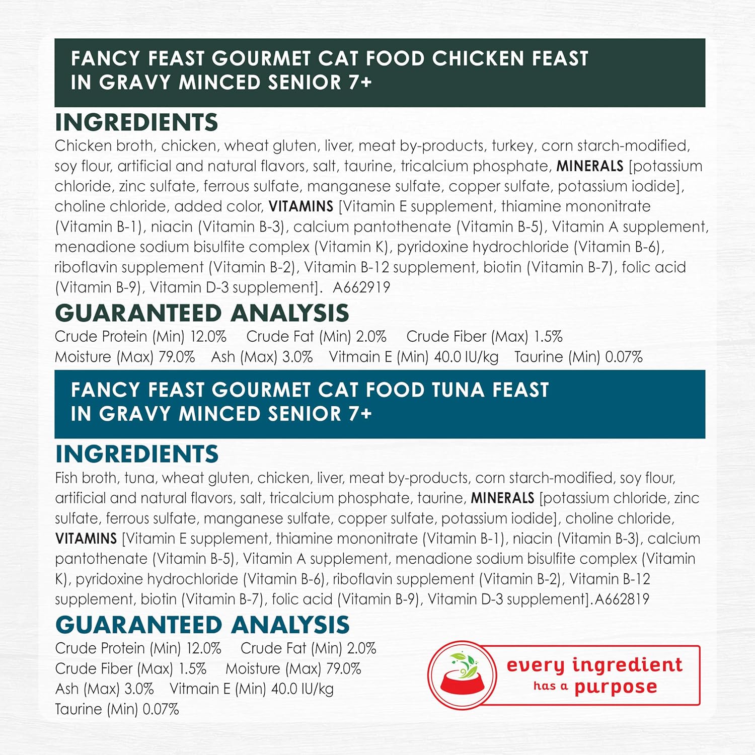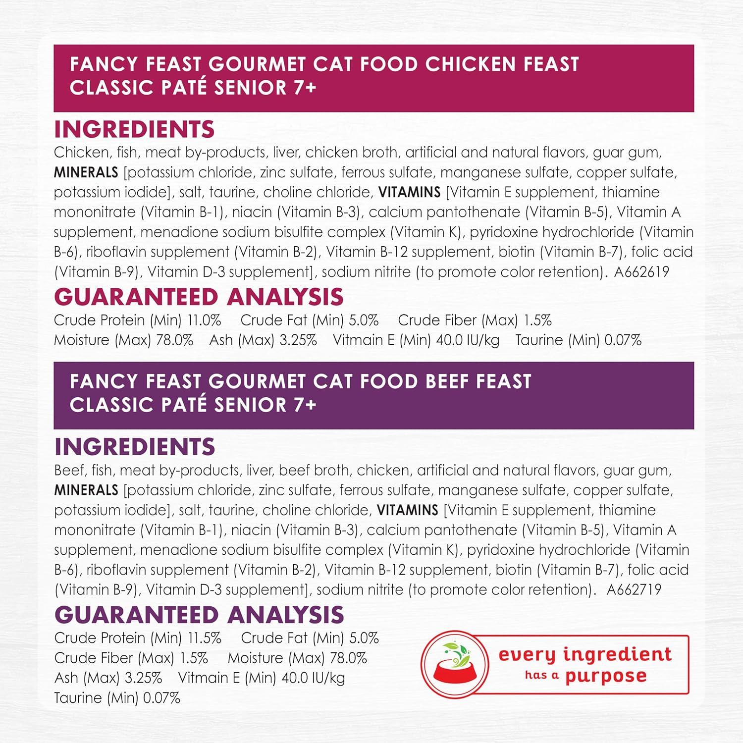 - Included Components: Two (2) Packs of Twelve (12) 3 oz. Cans - Purina Fancy Feast High Protein Senior Wet Cat Food Variety Pack, Senior 7+ Chicken, Beef & Tuna Feasts