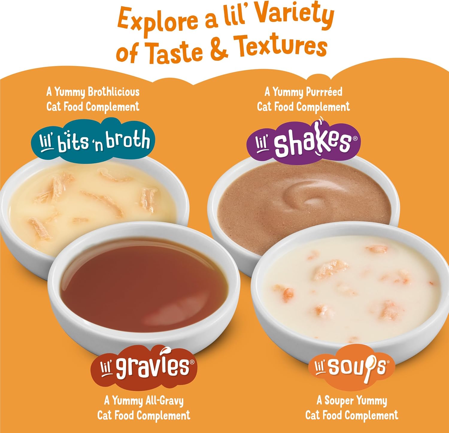 - Directions: Swirl cup gently before opening. Feed an average size adult cat one cup per day. Friskies Lil' Soups are intended for supplemental feeding only. This complement may be fed daily along with a complete and balanced cat food diet.