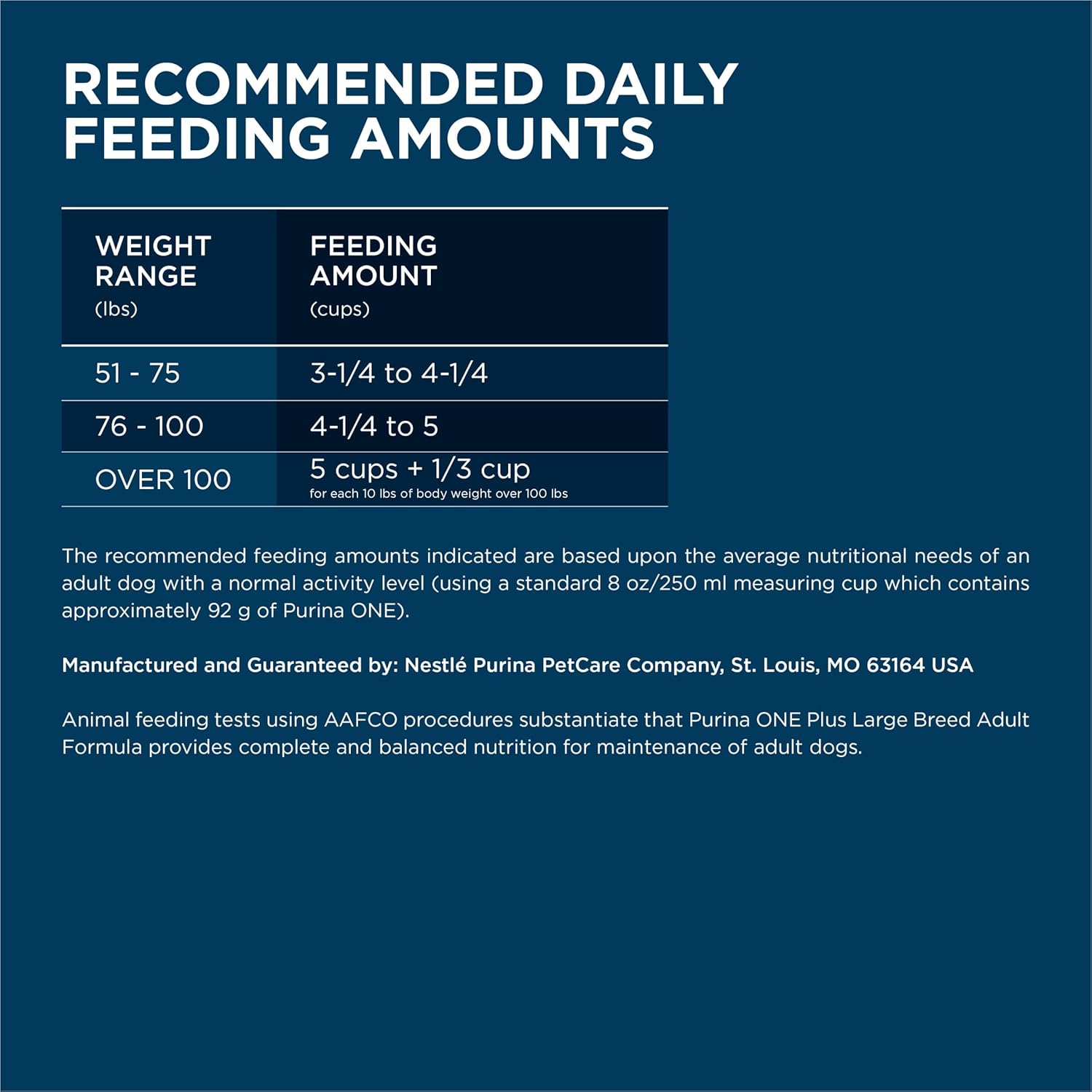 Fill your large breed dog's bowl with the wholesome goodness of Purina ONE +Plus Natural Large Breed Formula With Added Vitamins, Minerals and Nutrients adult dry dog food. Real chicken is the first ingredient in this high-protein dog food recipe, and the unique combination of tender, protein-rich meaty morsels and crunchy kibble delivers the tastes and textures he loves. Our large breed adult dog food is high in protein to help support strong muscles, including a healthy heart, and it delivers 100 percent complete and balanced nutrition for whole-body health. Plus, this natural dog food with glucosamine helps maintain an ideal body condition and joint health for dogs, and it contains no artificial flavors or preservatives and zero fillers, so every ingredient has a purpose. We include four antioxidant sources in our adult large breed dog food for a strong immune system, and calcium along with the crunchy kibble supports strong teeth and healthy gums.