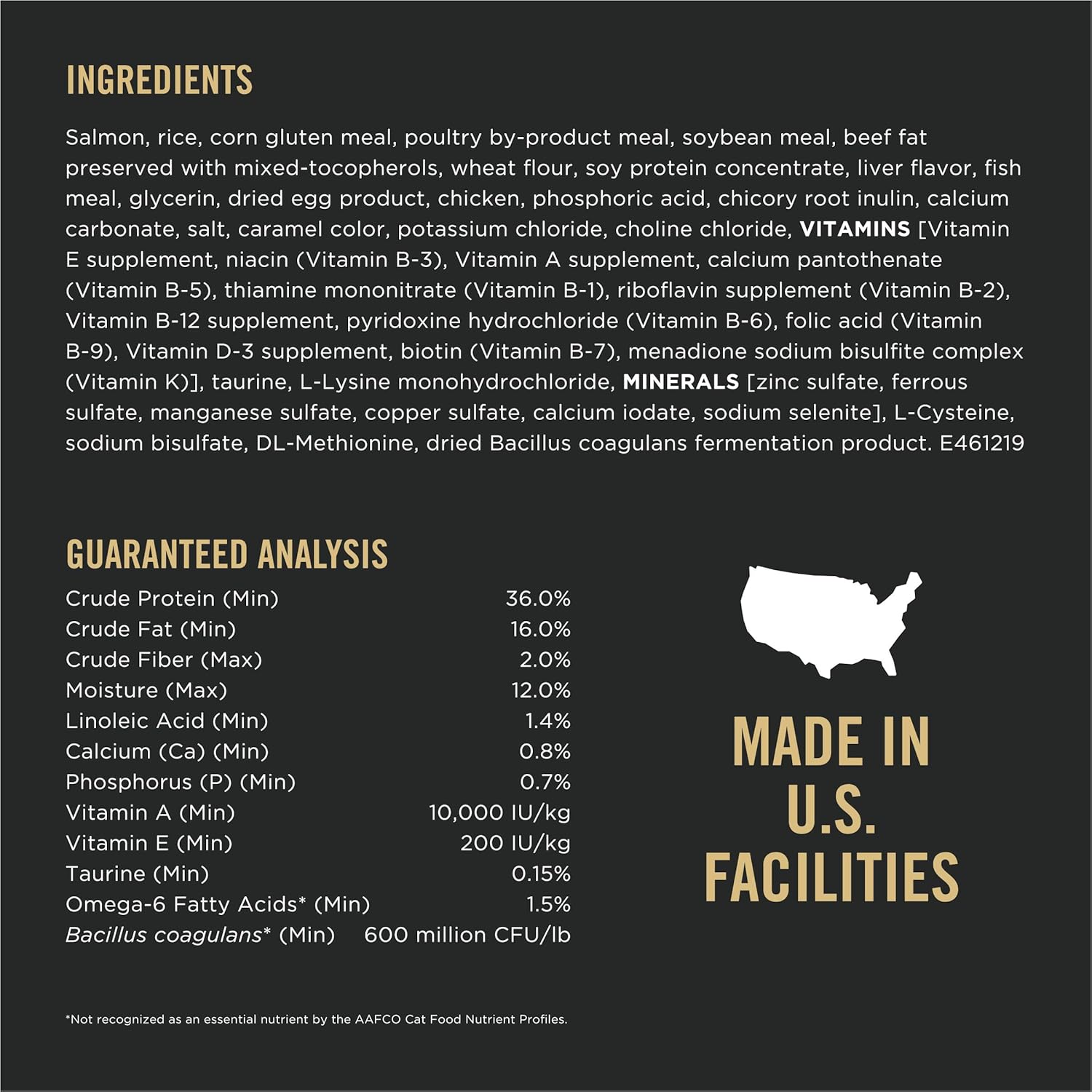 - Included Components: One (1) 6 lb. Bag - Purina Pro Plan High Protein Cat Food With Probiotics for Cats, Shredded Blend Salmon and Rice Formula