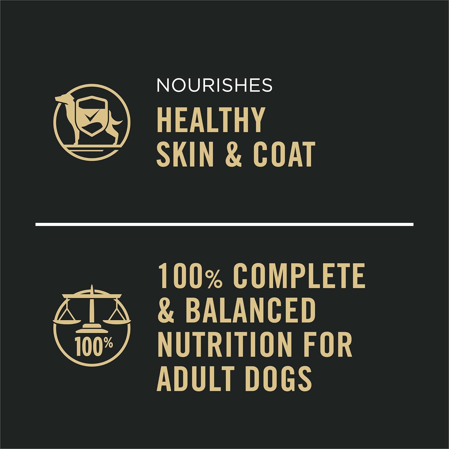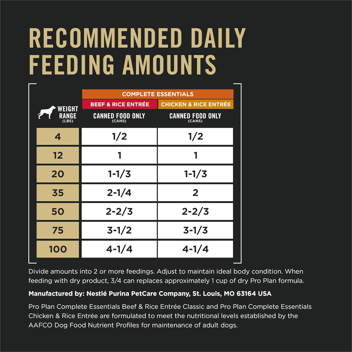Savor your dog's happiness when you give him a selection from this Purina Pro Plan COMPLETE ESSENTIALS Classic adult wet dog food variety pack. Real chicken or beef is the number1ingredient in this Purina dog food, and each super-premium dog food entree is made with high-quality ingredients, including highly digestible rice. Skin-nourishing nutrients in every dog wet food serving support your dog's healthy skin and coat, while the high protein level helps to promote his ideal body condition. Each selection in this canned dog food variety pack contains no artificial colors, flavors or preservatives. Our high protein wet dog food formulas help build lean muscles while supporting his healthy immune system. Your dog gets 100 percent complete and balanced nutrition for adult dogs in every bowl. Rotate between the two mouthwatering entrees offered in this Purina Pro Plan COMPLETE ESSENTIALS premium wet dog food variety pack to keep your dog intrigued.