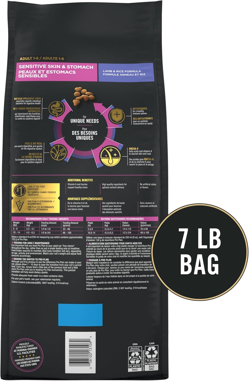 - Included Components: One (1) 7 lb. Bag - Purina Pro Plan Sensitive Skin and Stomach Cat Food, Lamb and Rice Formula